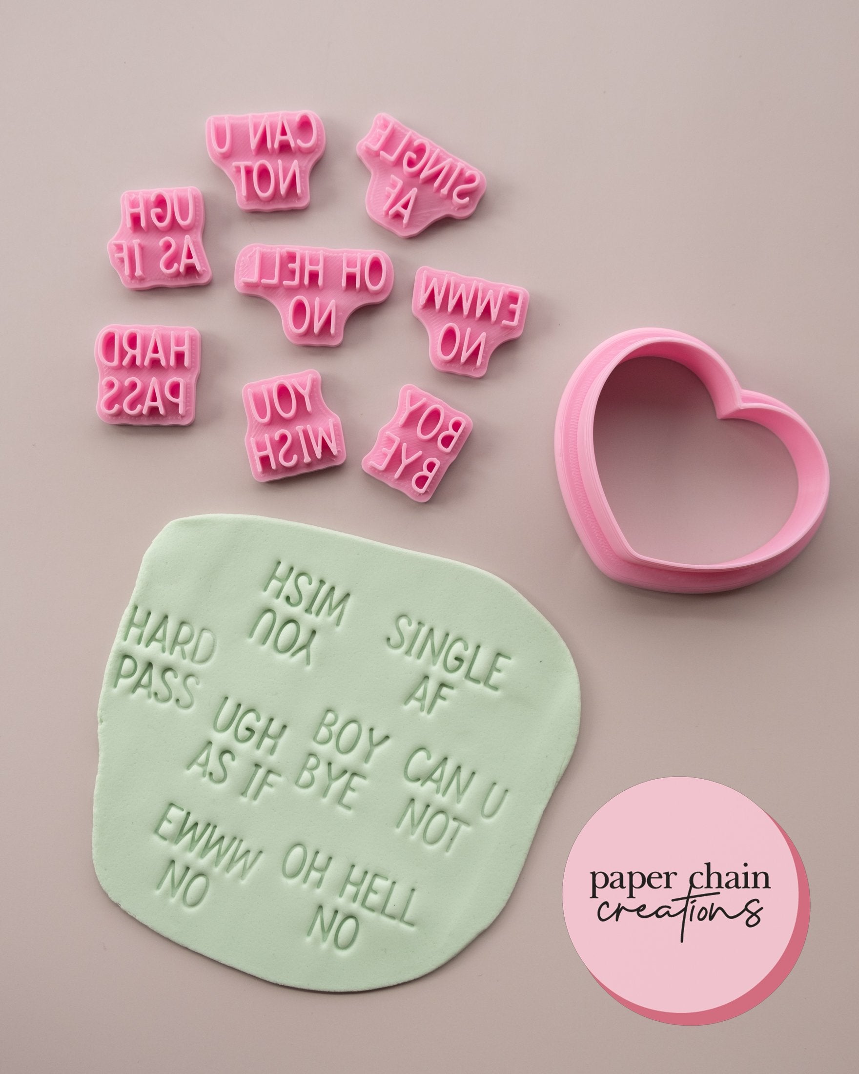 Anti Valentine's Day Candy Hearts Cookie Cutter and Embossers