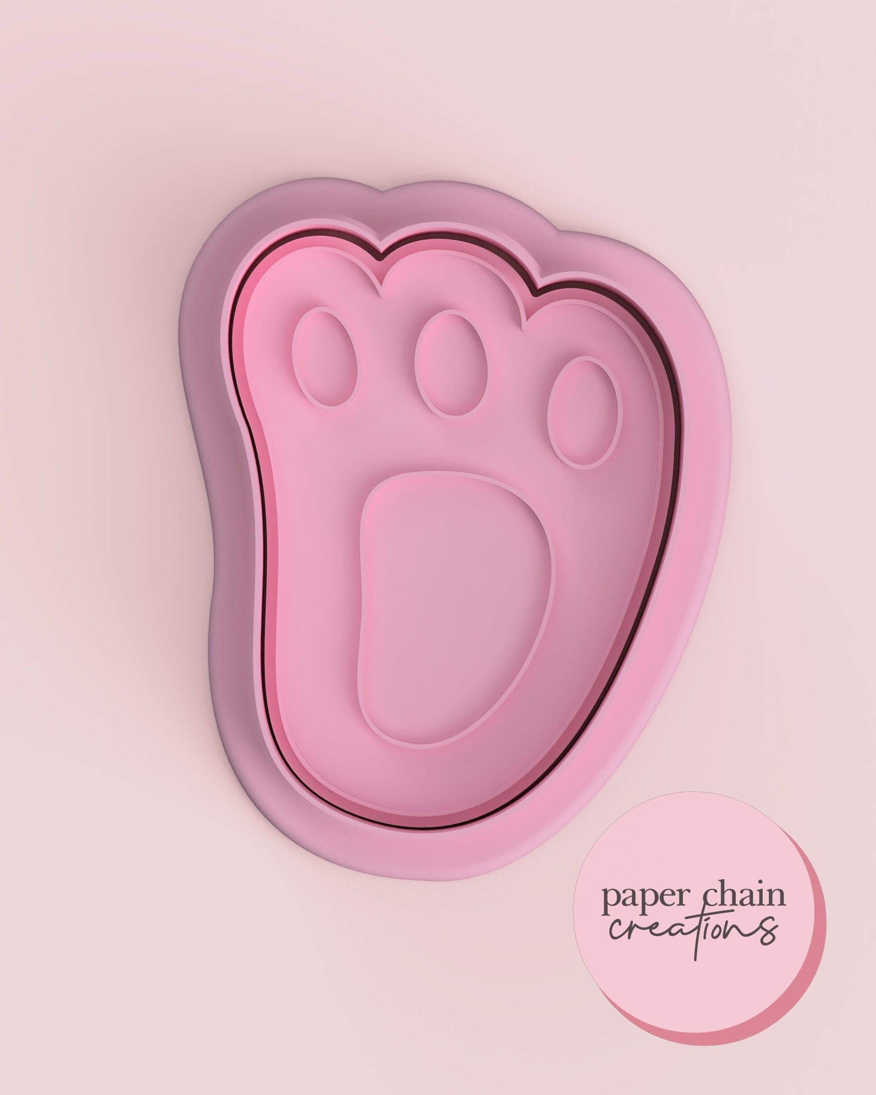 1 x Bunny Foot Cookie Cutter with matching embosser. Embosser comes with handle on the back for ease of use.