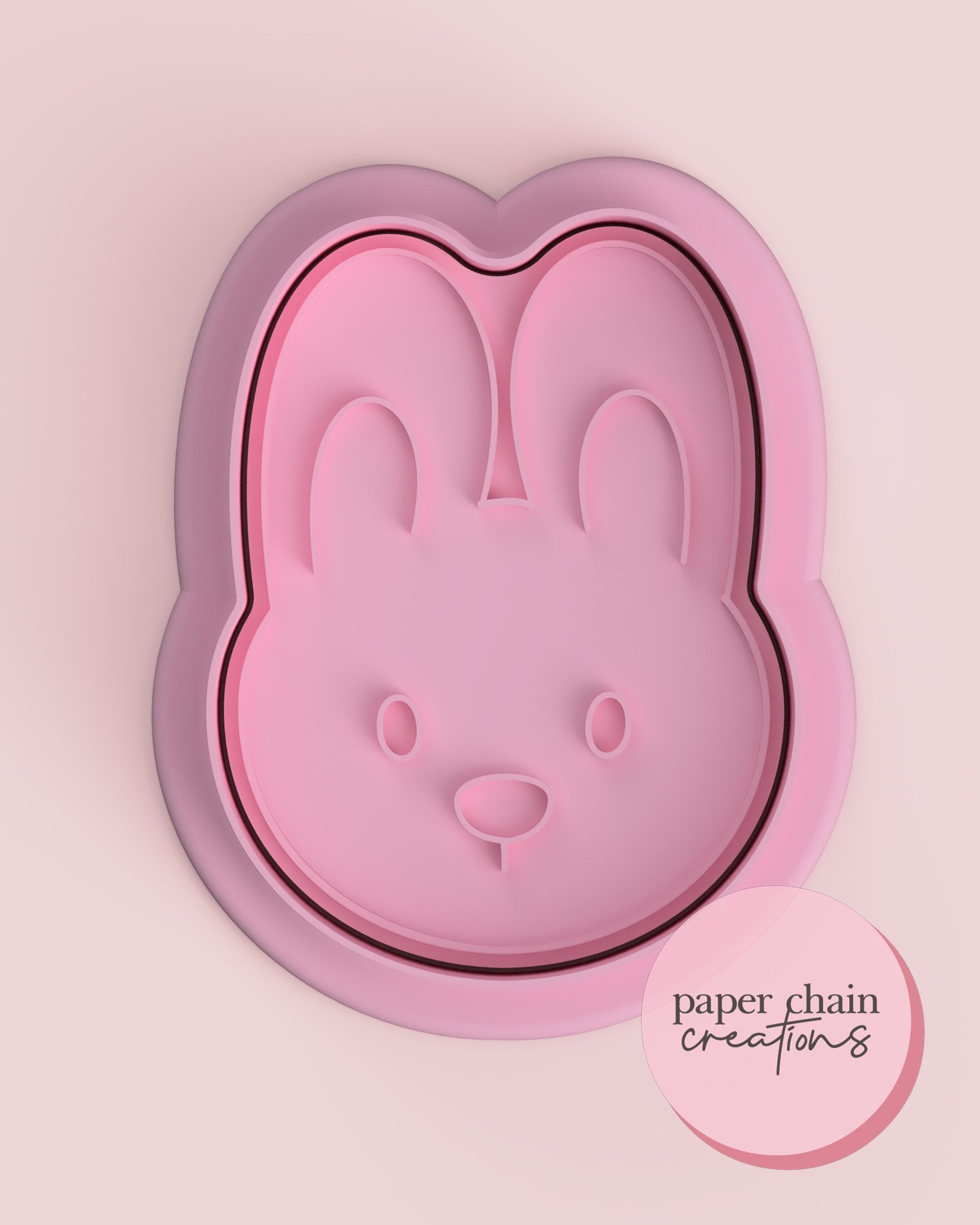 1 x Bunny V3 Cookie Cutter with matching embosser. Embosser comes with handle on the back for ease of use.