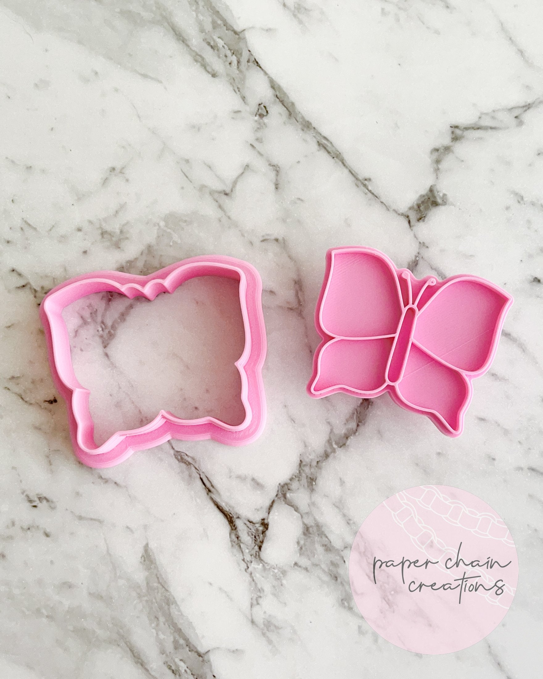 1 x Butterfly V2 Cookie Cutter with matching embosser. Embosser comes with handle on the back for ease of use.