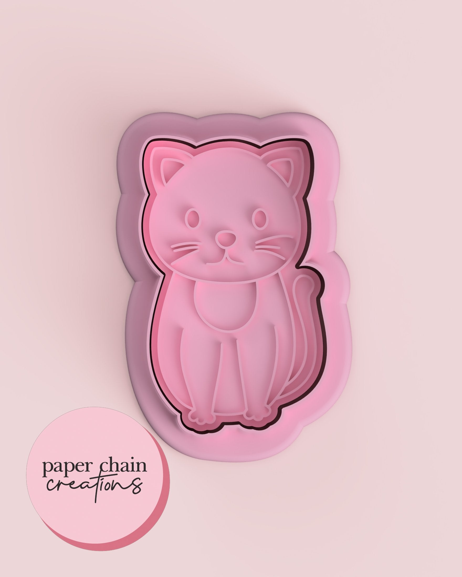 1 x Cat with Body Cookie Cutter with matching embosser. Embosser comes with handle on the back for ease of use.