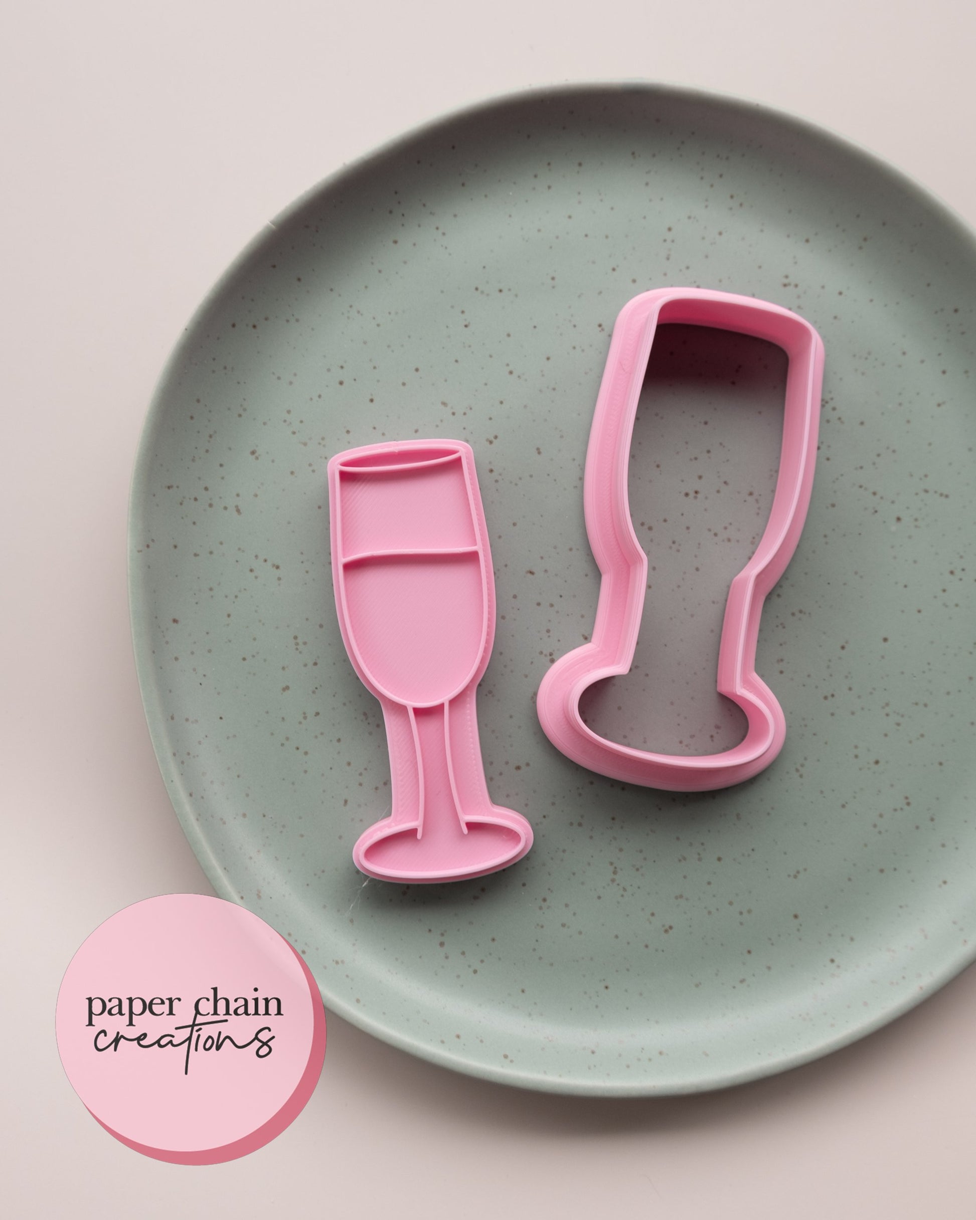 1 x Champagne Flute Cookie Cutter with matching embosser. Embosser comes with handle on the back for ease of use.