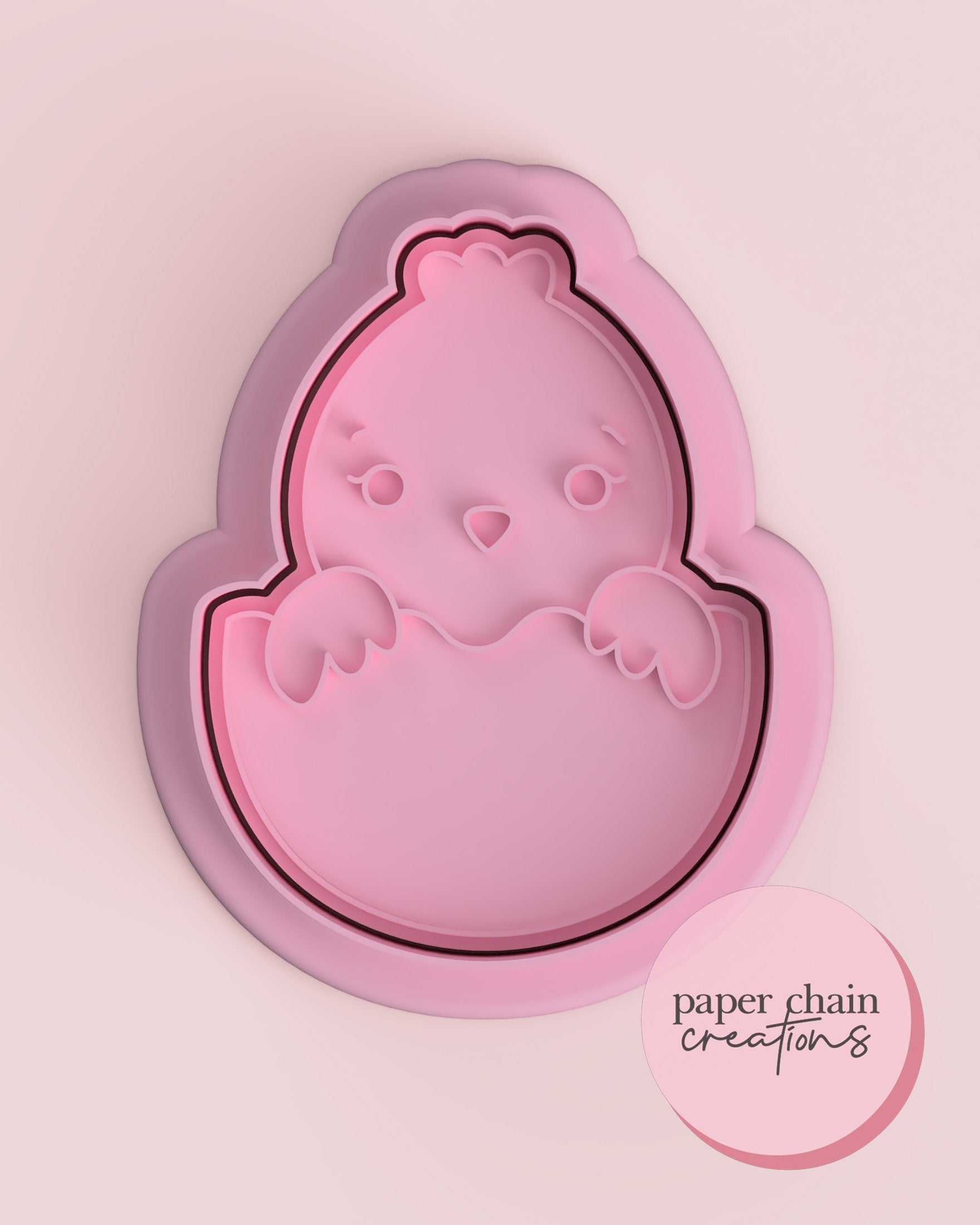 1 x Chick Egg Cookie Cutter with matching embosser. Embosser comes with handle on the back for ease of use.