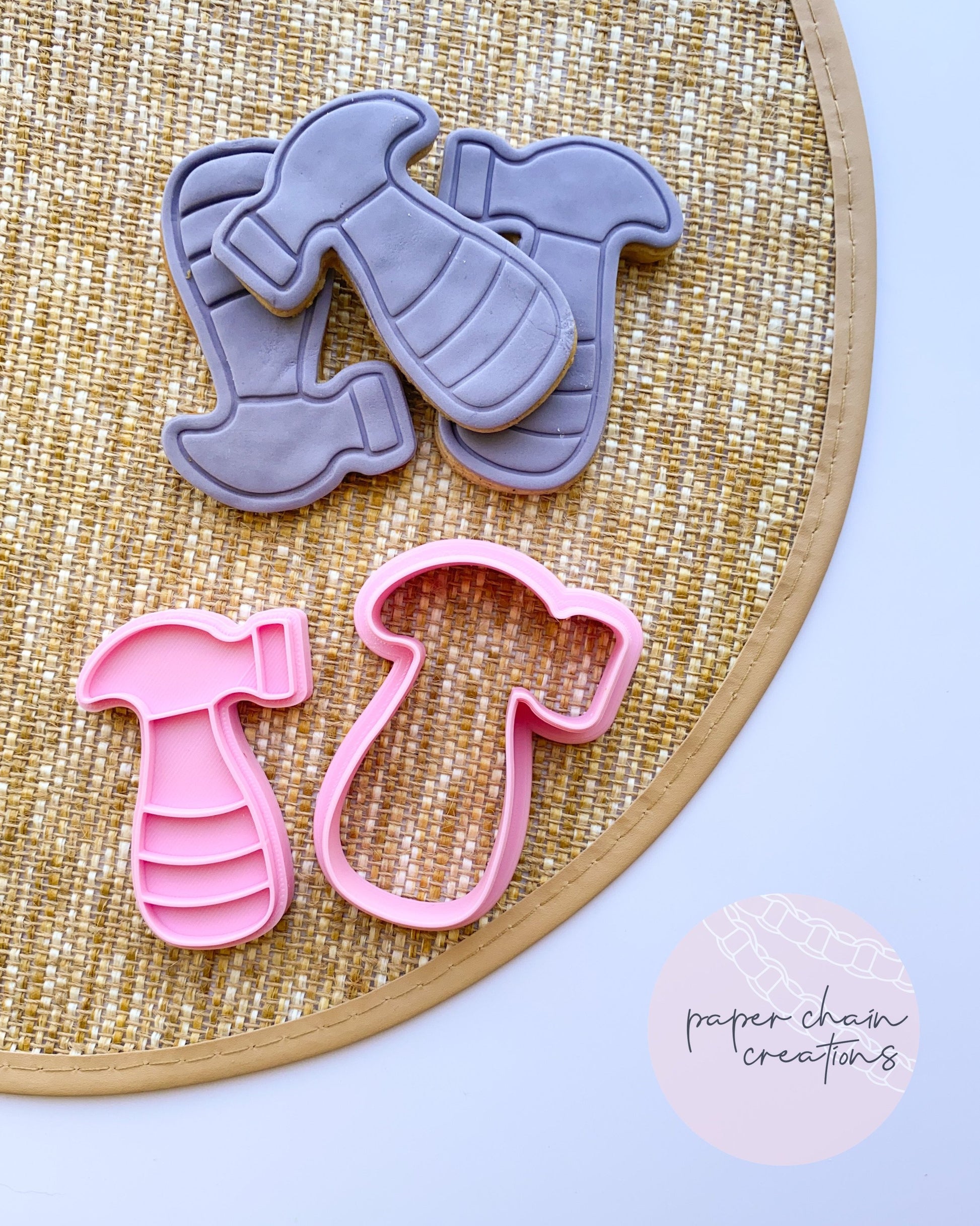 1 x Chubby Hammer cookie cutter with matching embosser. Embosser comes with handle on the back for ease of use.