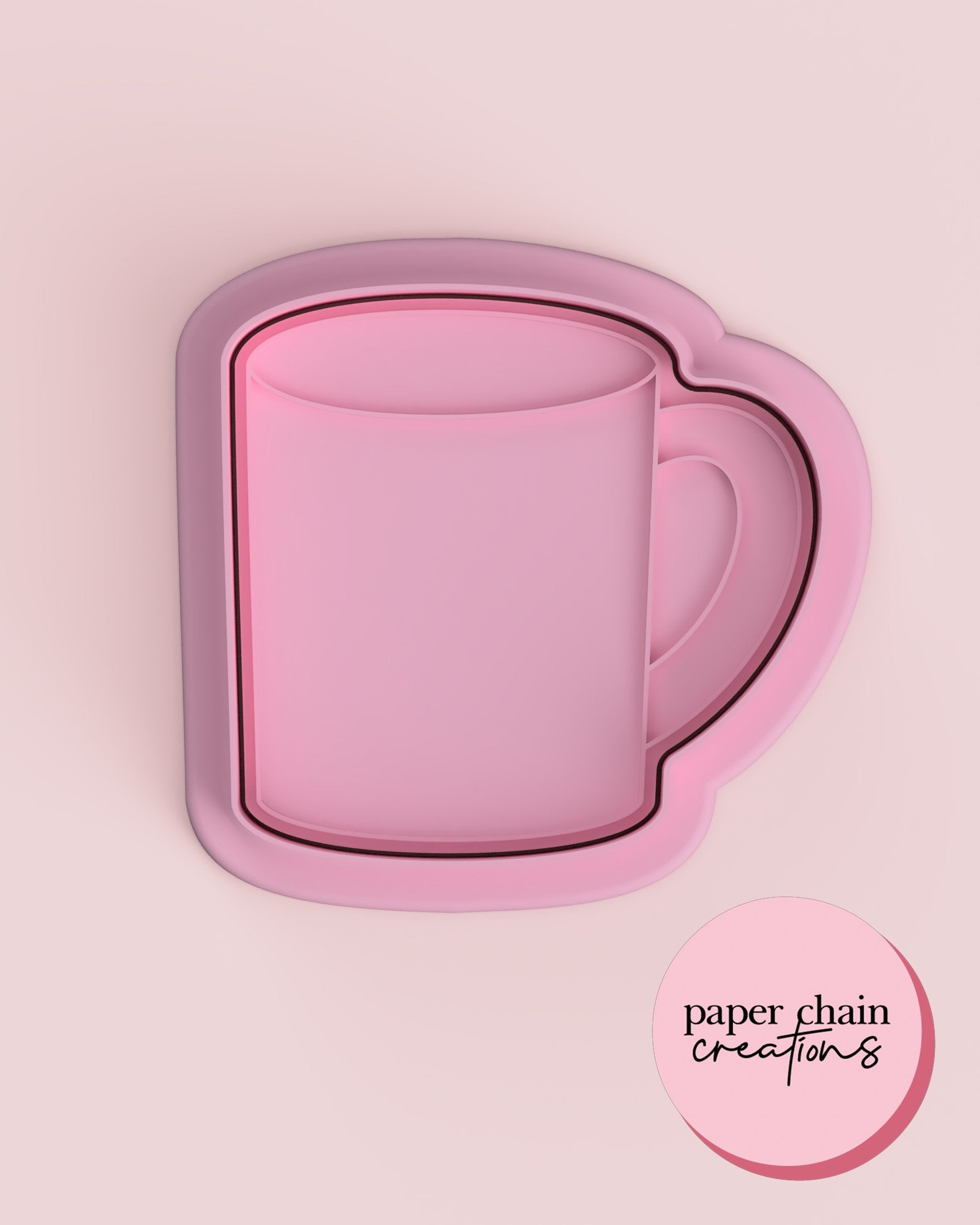 1 x Coffee Mug Cookie Cutter with matching embosser. Embosser comes with handle on the back for ease of use.