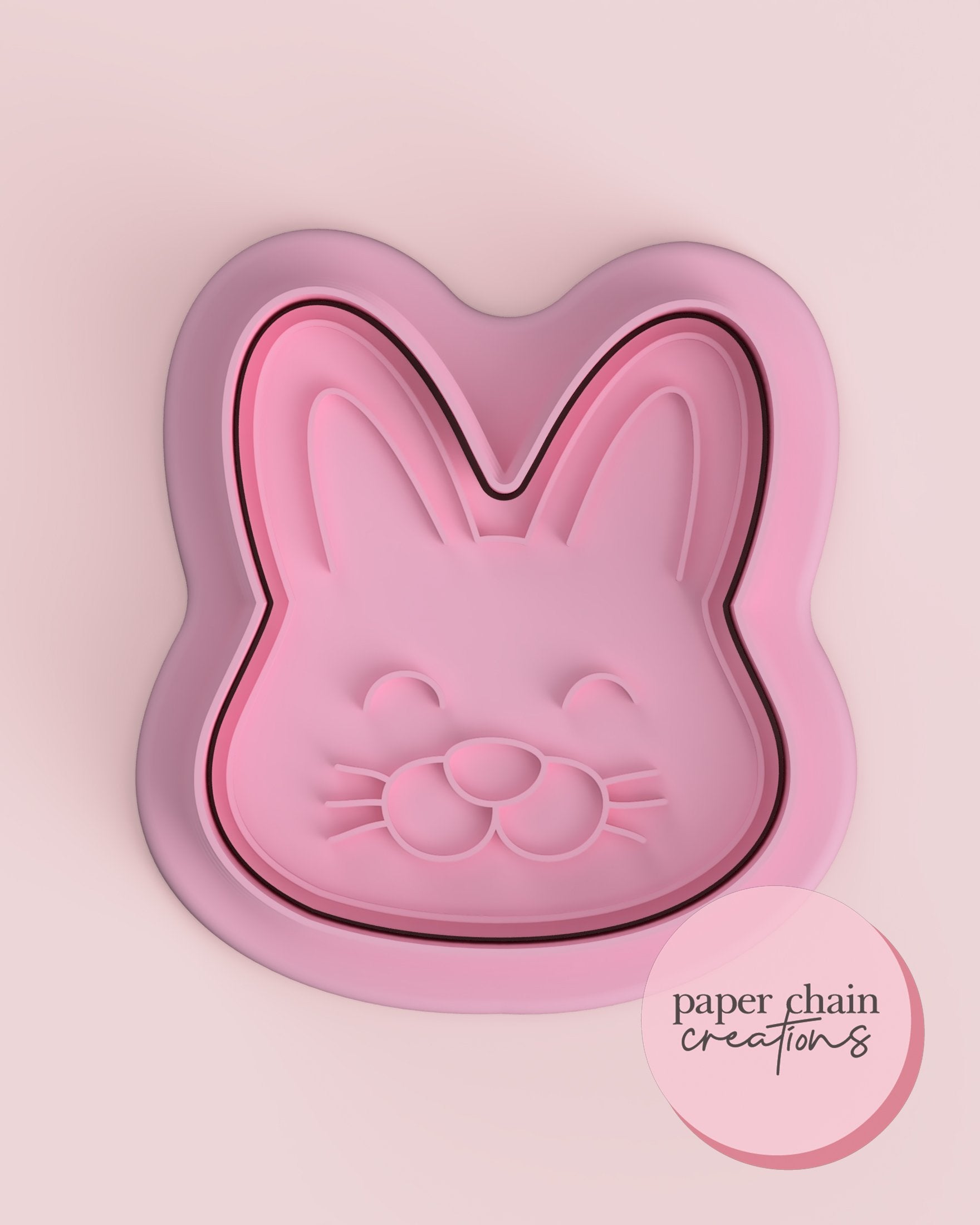 1 x Cute Easter Bunny cookie cutter with matching embosser. Embosser comes with handle on the back for ease of use.