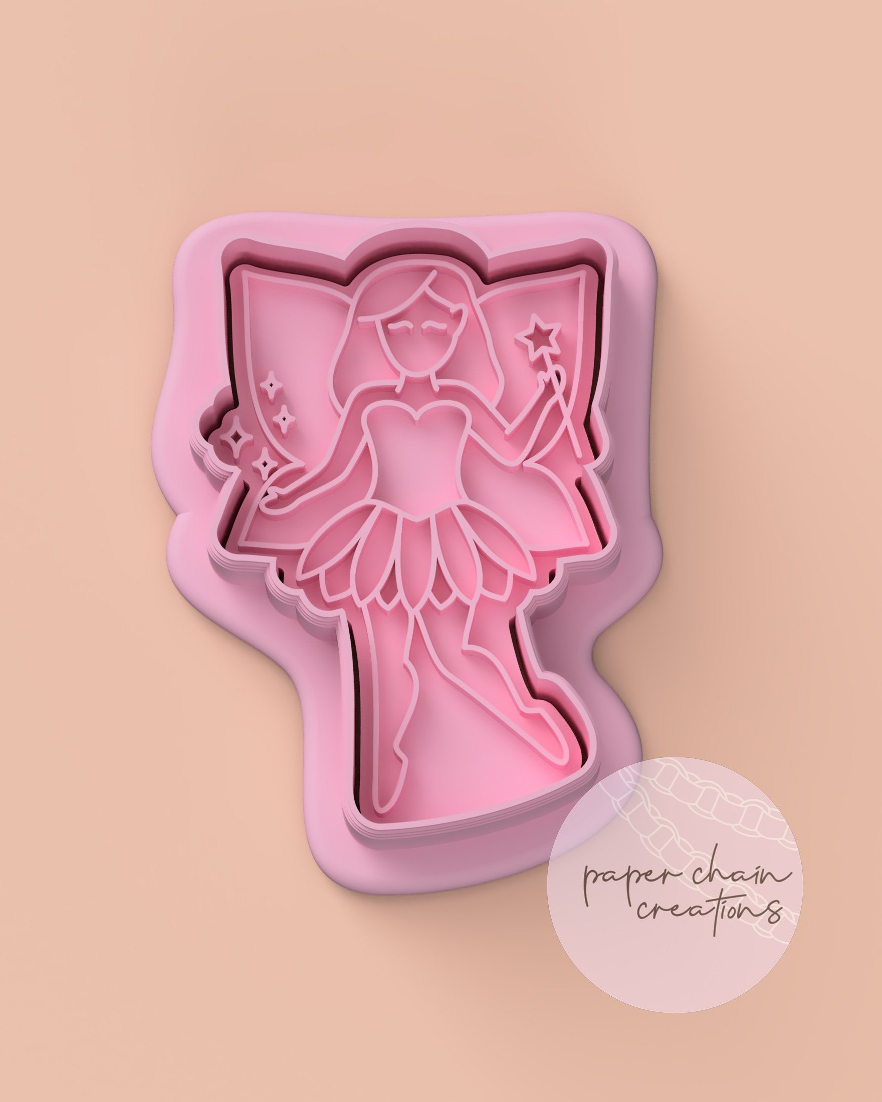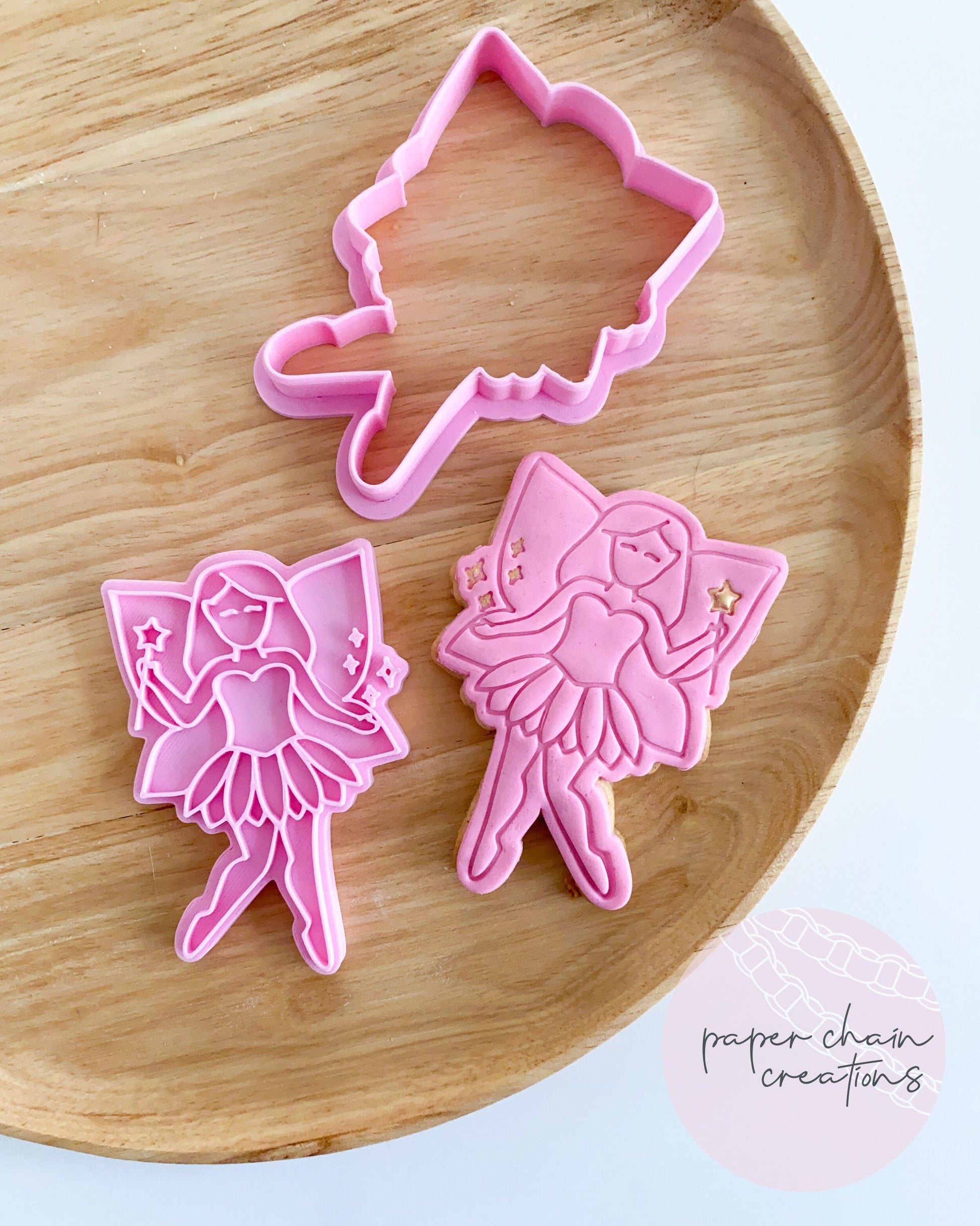 1 x Fairy cookie cutter with matching embosser. Embosser comes with handle on the back for ease of use.