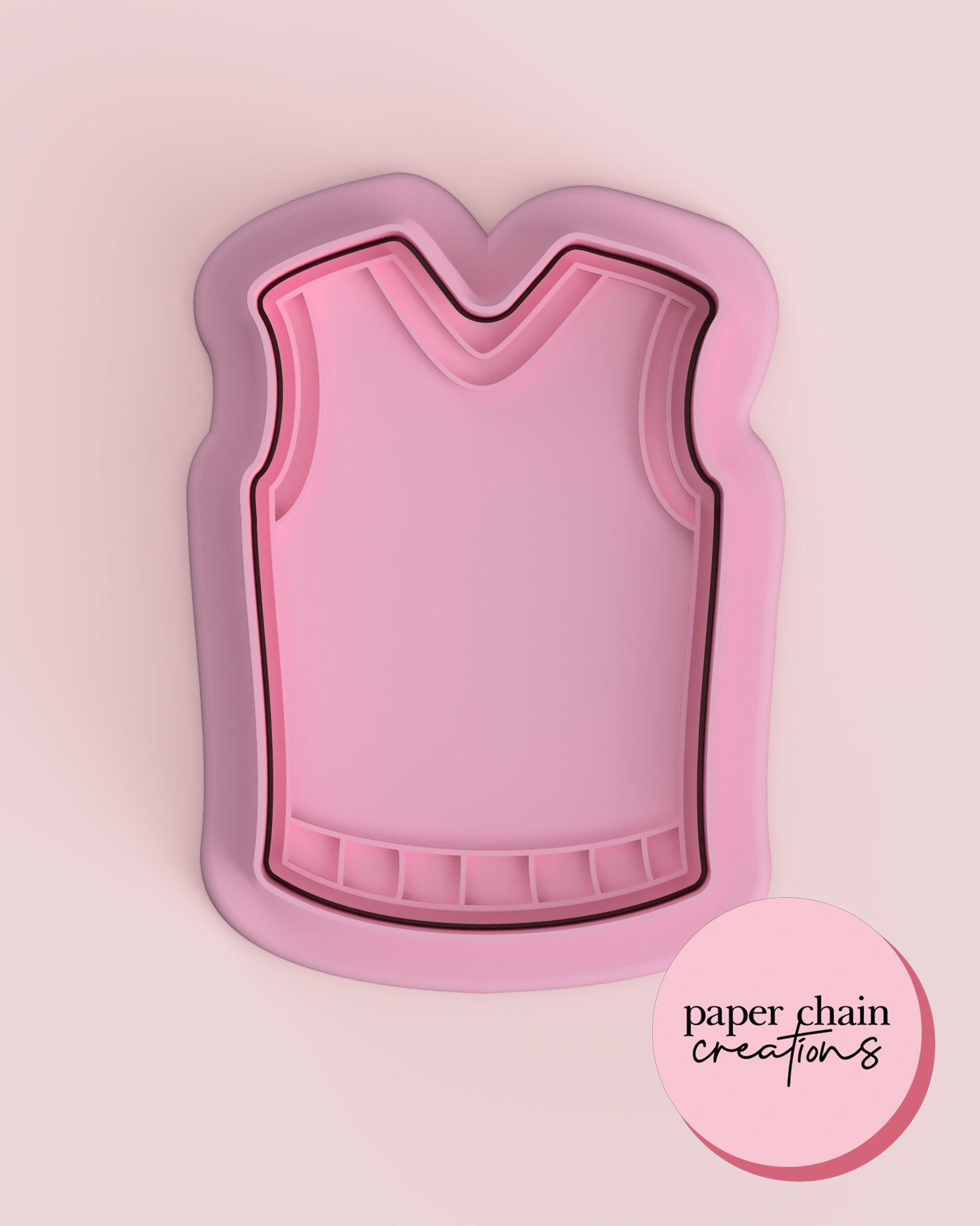 1 x Football Jumper Cookie Cutter with matching embosser. Embosser comes with handle on the back for ease of use.