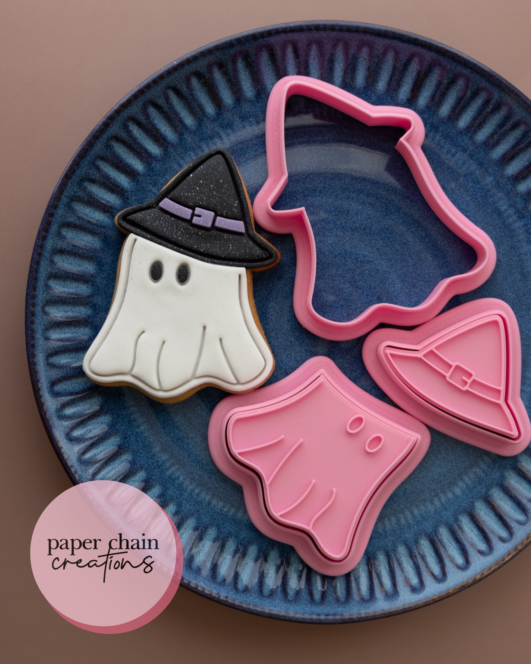 Ghost with Witches Hat Cookie Cutters and Fondant Embossers SET