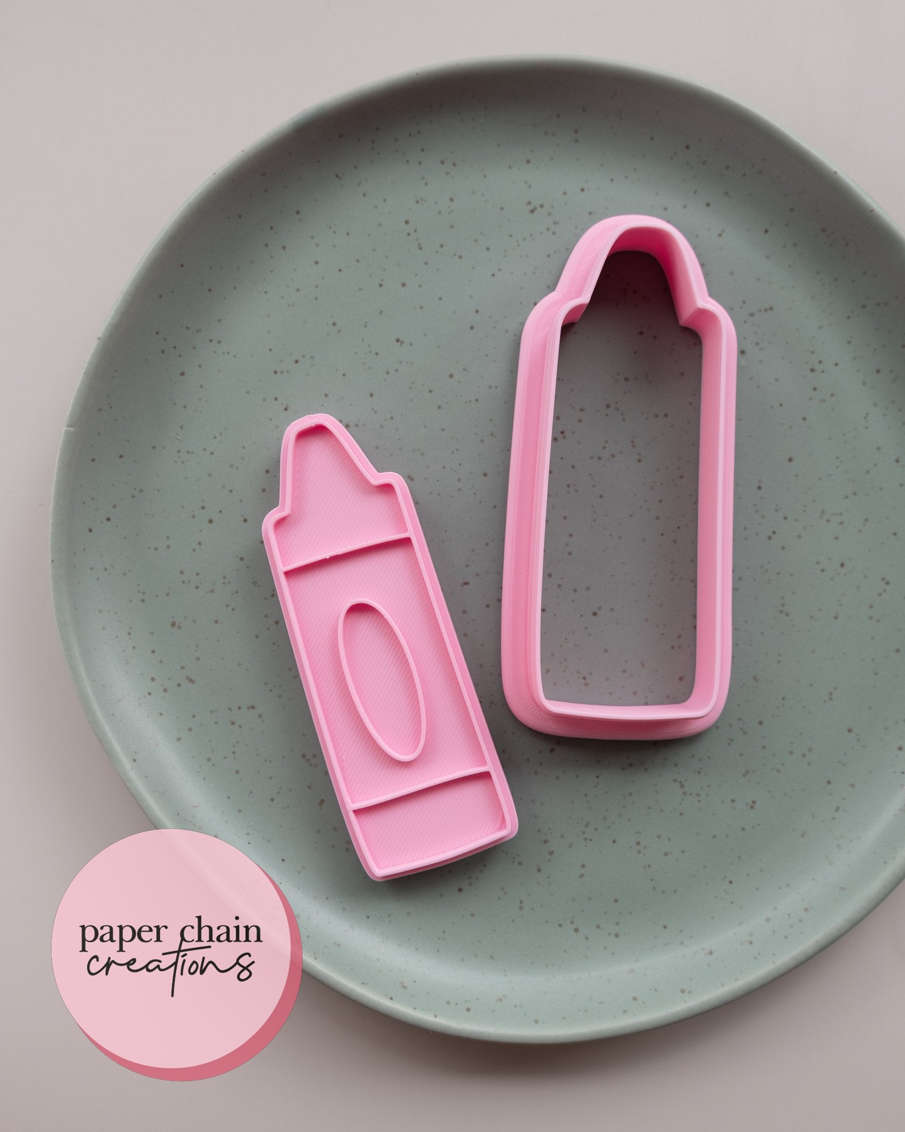 1 x Crayon cookie cutter with matching embosser. Embosser comes with handle on the back for ease of use.