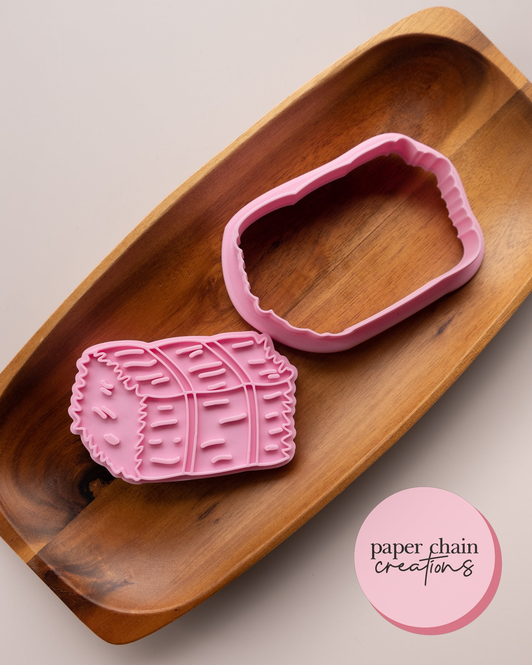 1 x Hay Bale Cookie Cutter with matching embosser. Embosser comes with handle on the back for ease of use.
