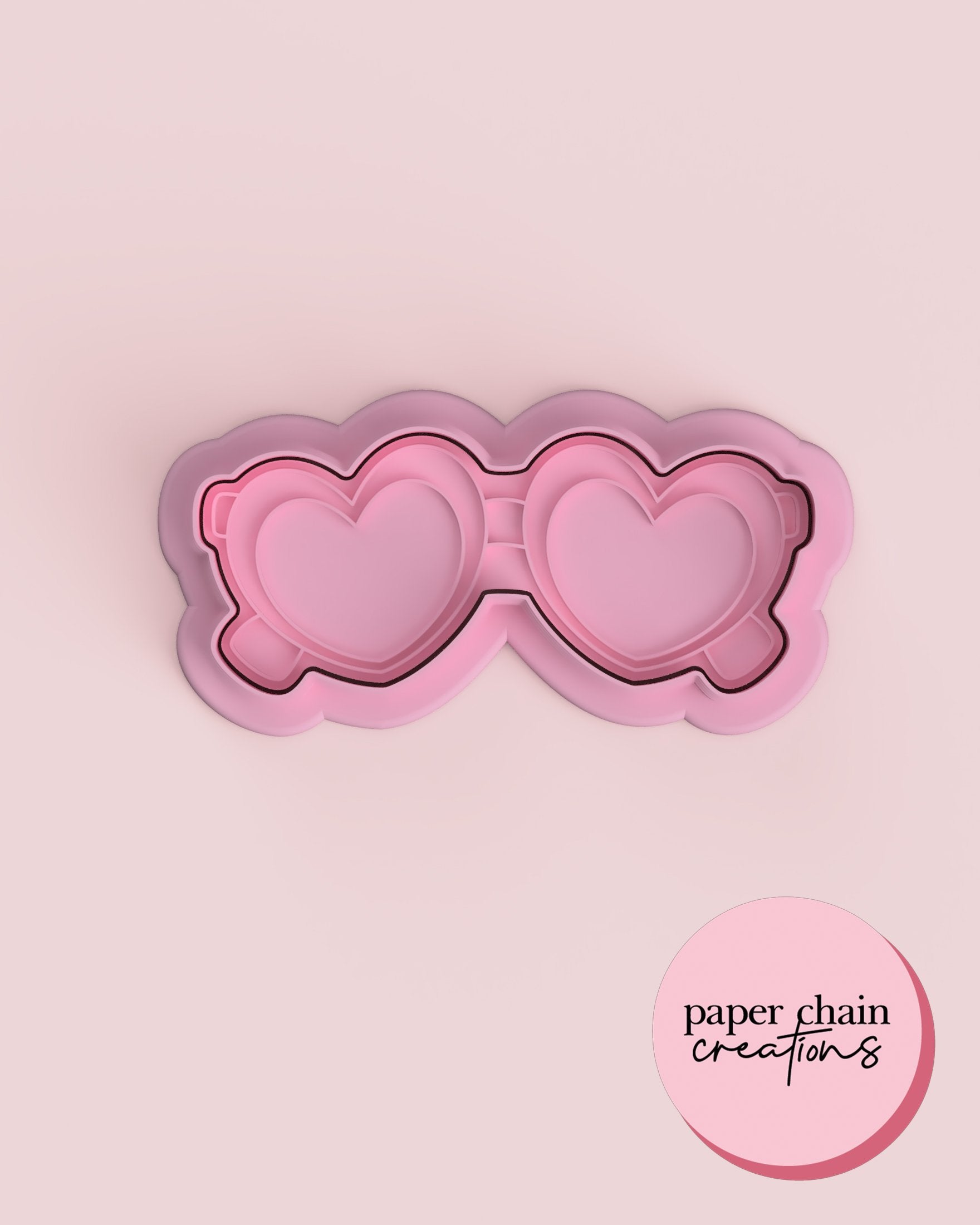 Heart Glasses Cookie Cutter and Fondant Embosser