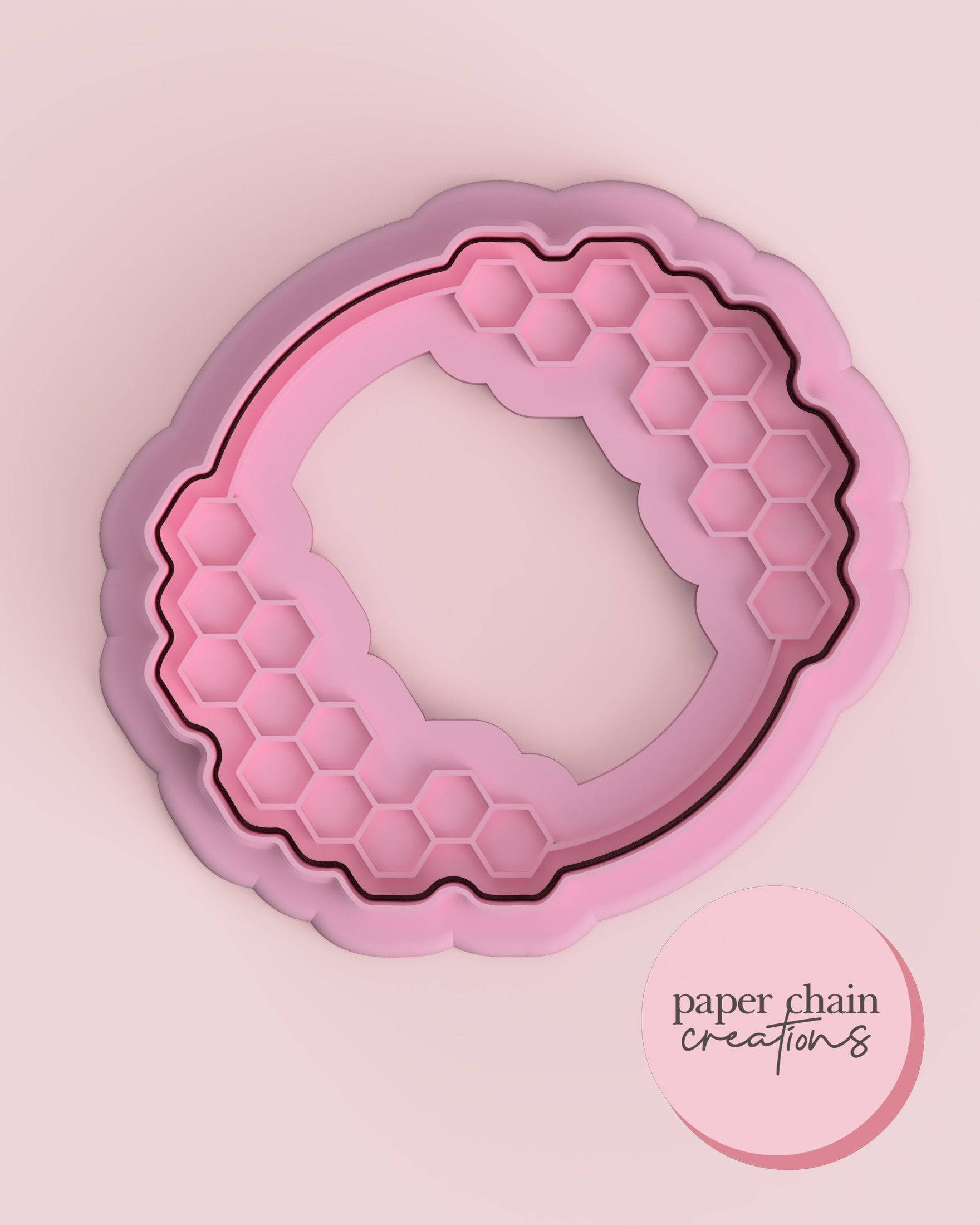 1 x Honeycomb Wreath cookie cutter with matching embosser. Embosser comes with handle on the back for ease of use.