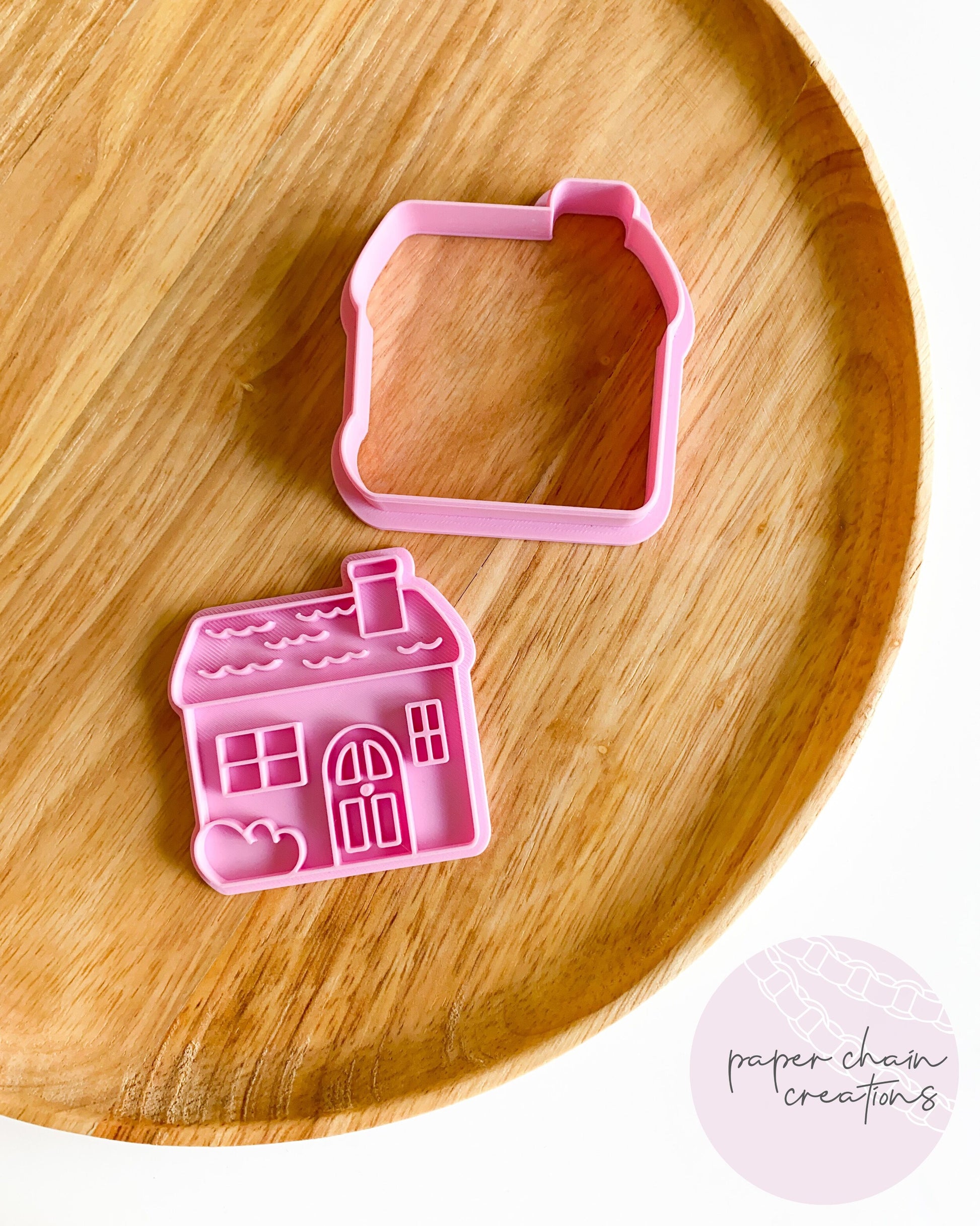 1 x House cookie cutter with matching embosser. Embosser comes with handle on the back for ease of use.