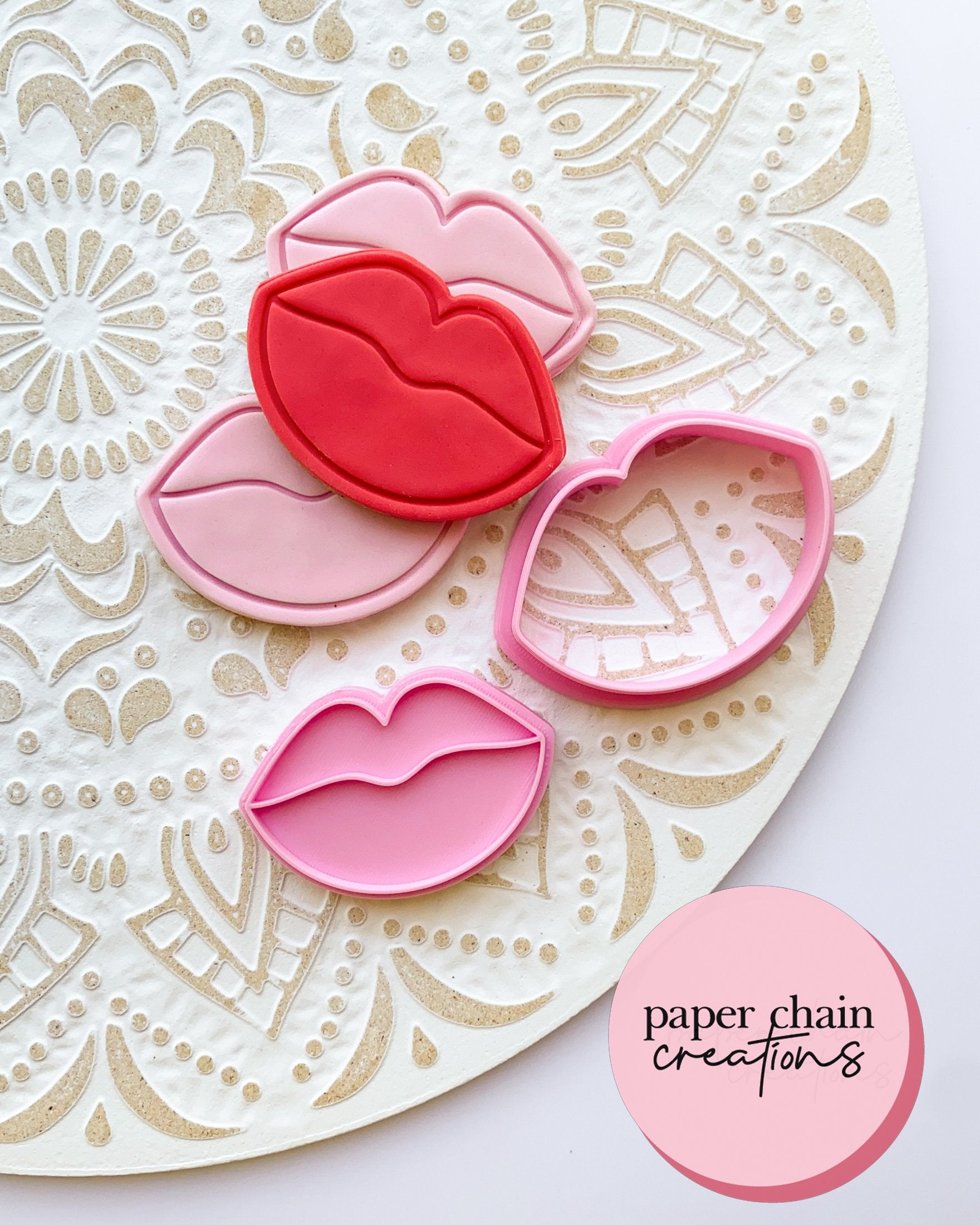 1 x Lips cookie cutter with matching embosser. Embosser comes with handle on the back for ease of use.