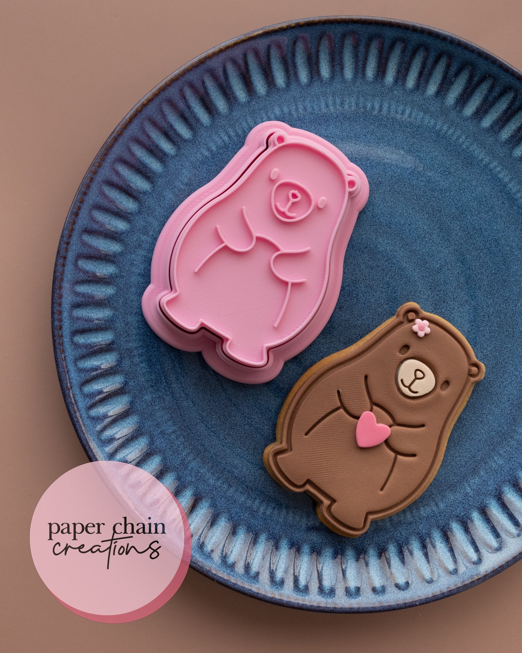 1 x Mama Bear Cookie Cutter with matching embosser. Embosser comes with handle on the back for ease of use.