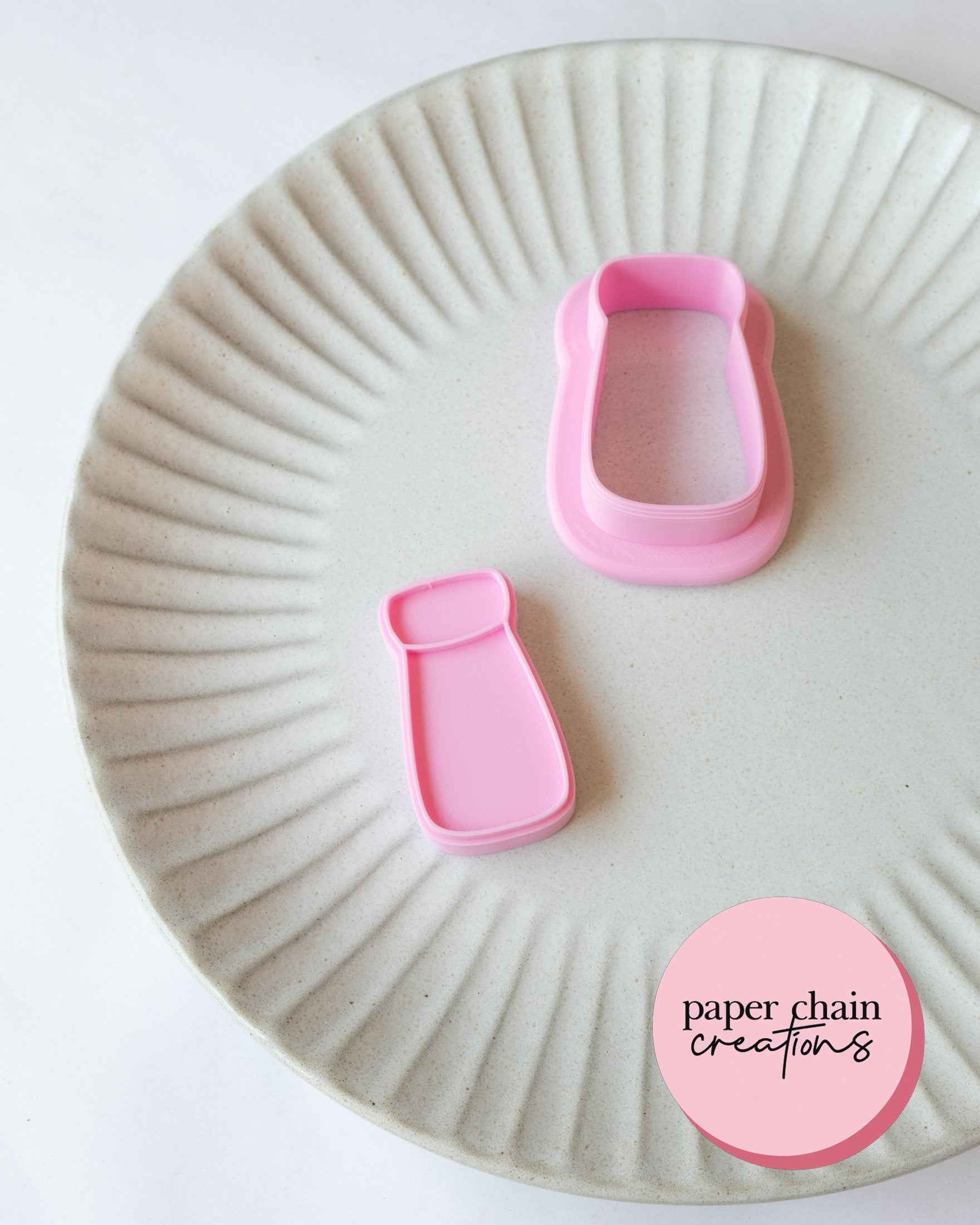 1 x Mini Milk Bottle Lolly cookie cutter with matching embosser. Embosser comes with handle on the back for ease of use.