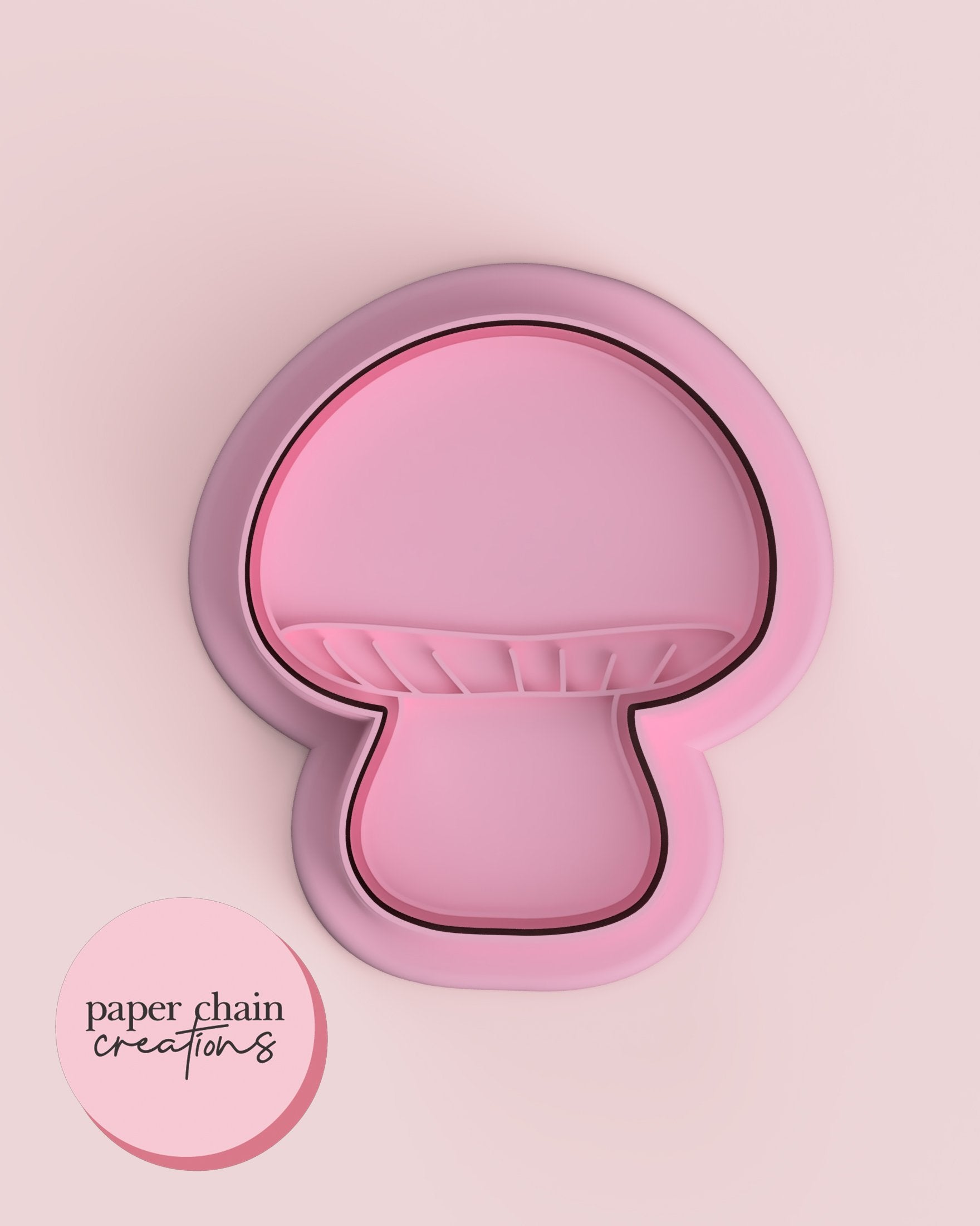 1 x Mushroom V2 Cookie Cutter with matching embosser. Embosser comes with handle on the back for ease of use.