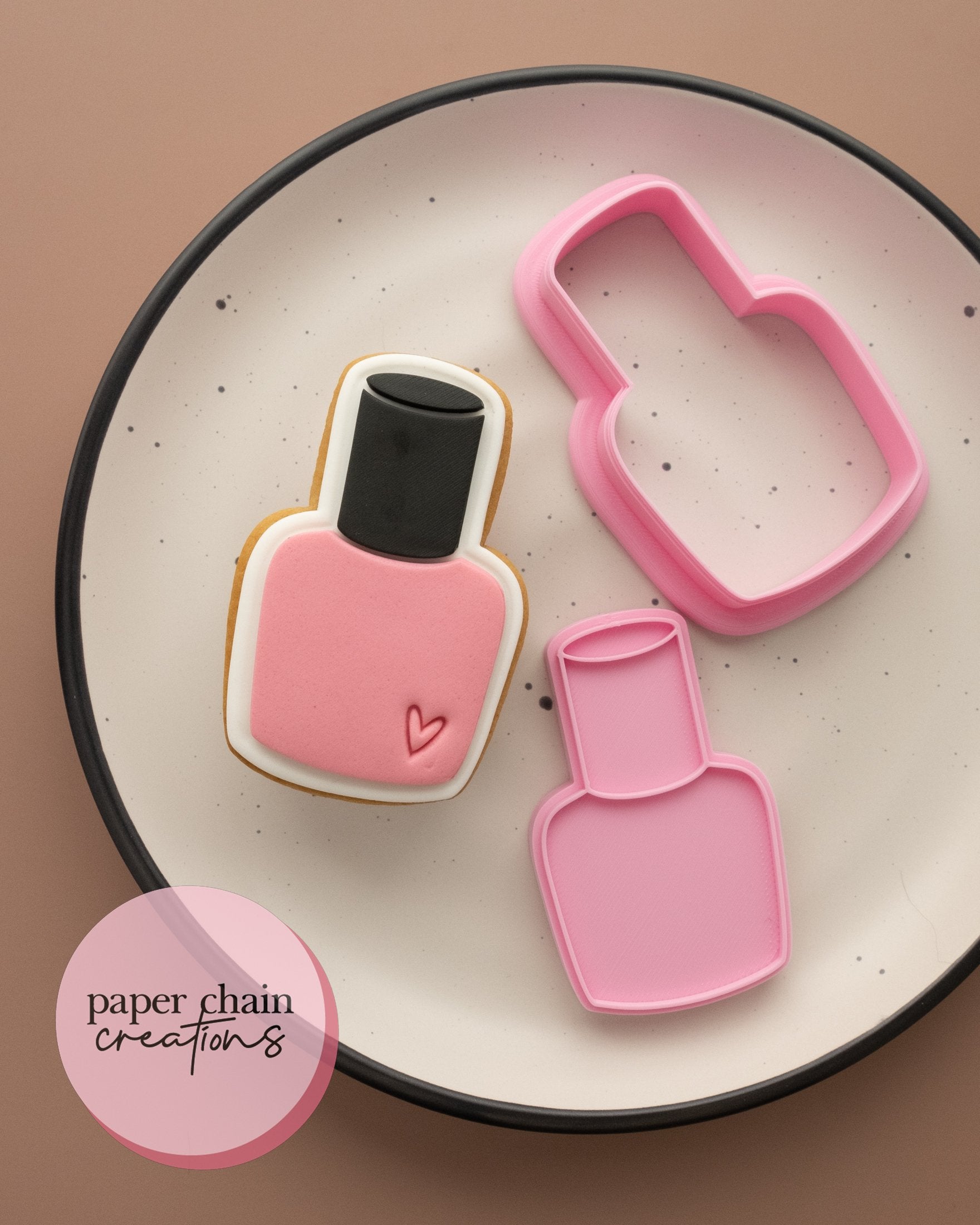 1 x Nail Polish Cookie Cutter with matching embosser. Embosser comes with handle on the back for ease of use.