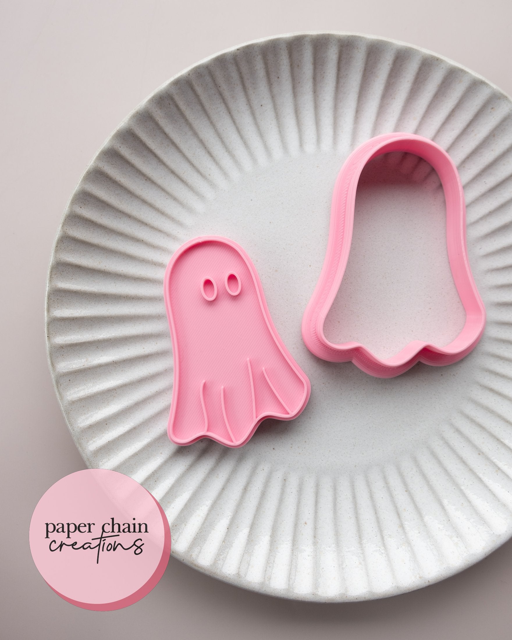 1 x Narrow Ghost Cookie Cutter with matching embosser. Embosser comes with handle on the back for ease of use.