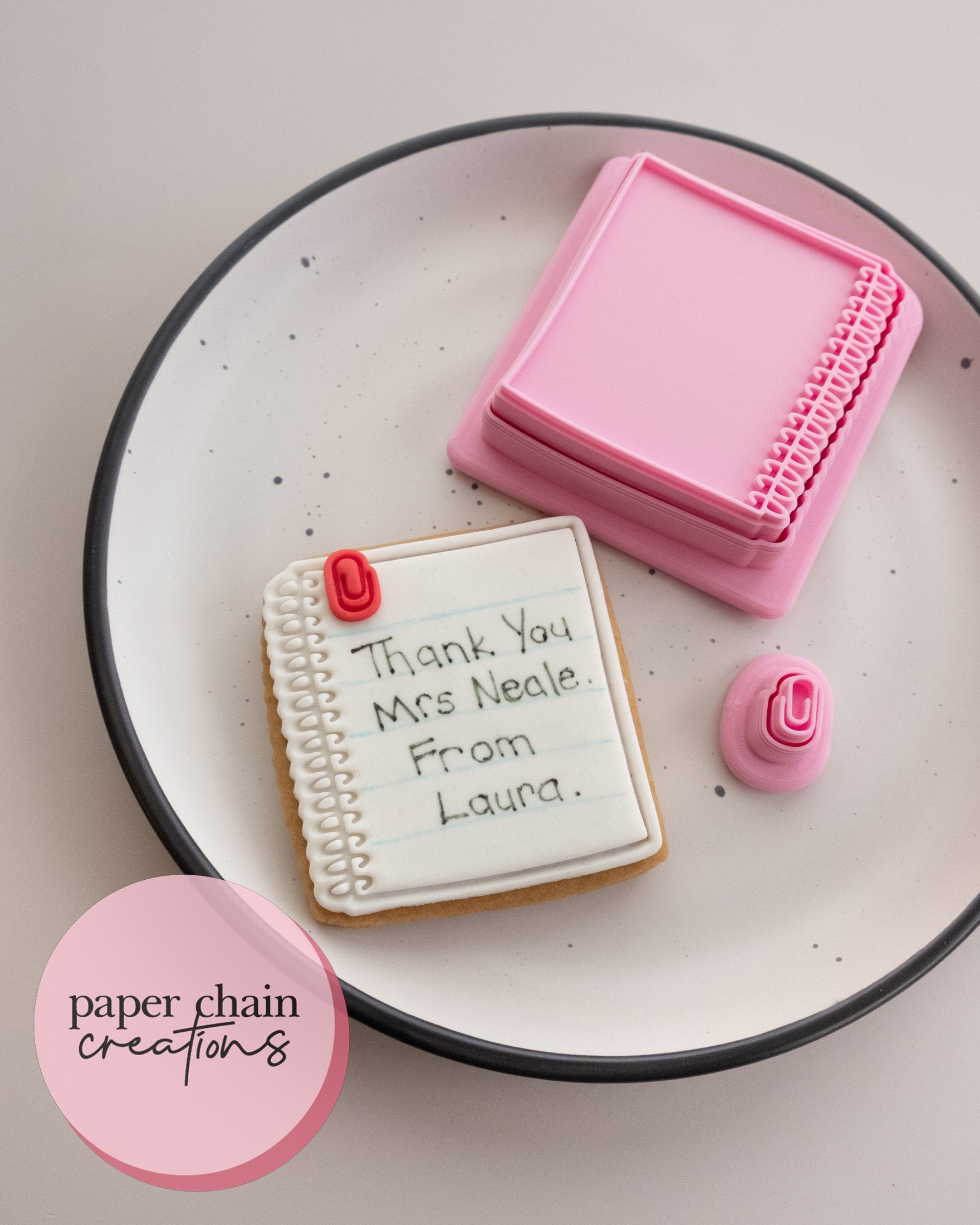 Notebook with Paperclip Cookie Cutter and Fondant Embosser