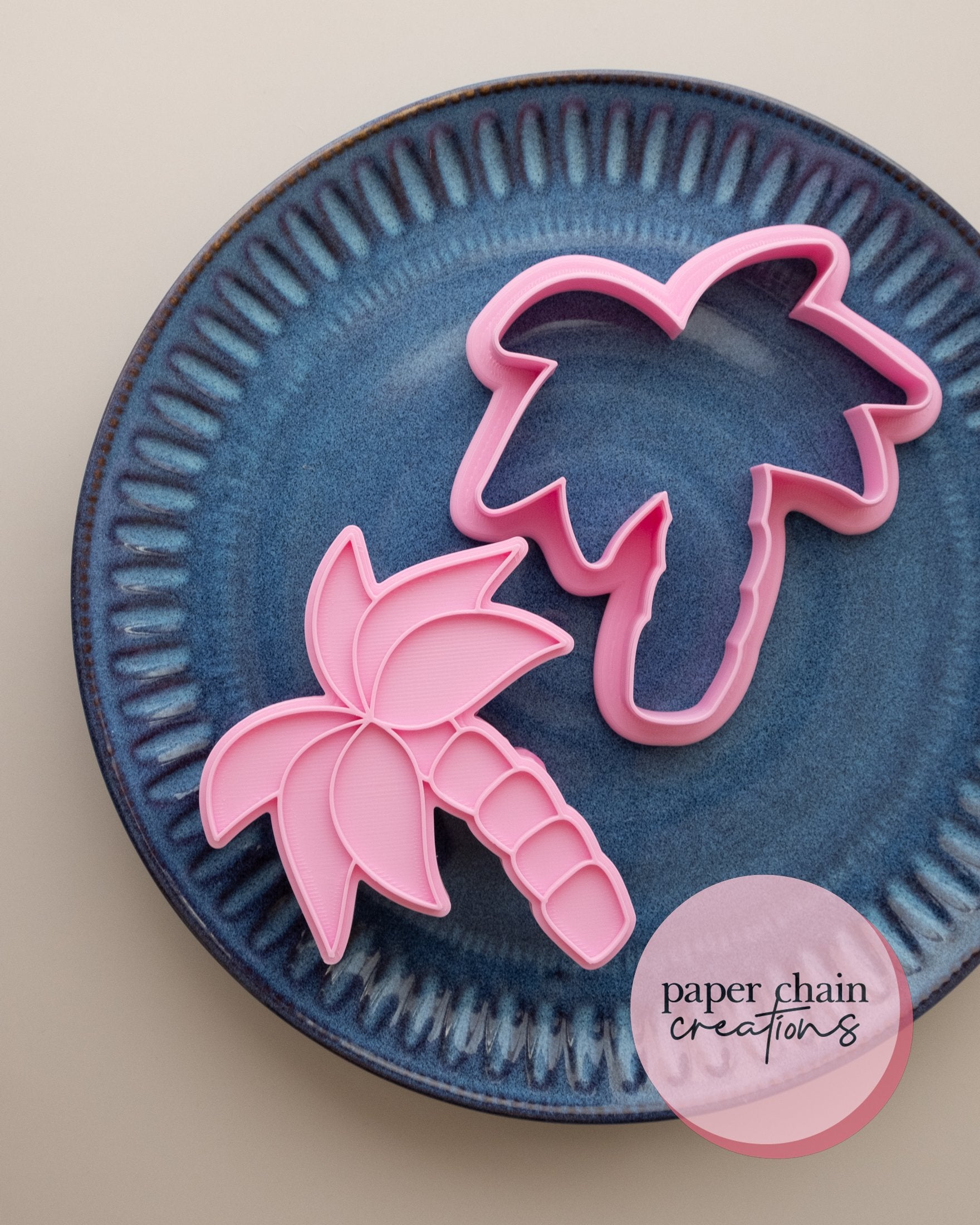 1 x Palm Tree Cookie Cutter with matching embosser. Embosser comes with handle on the back for ease of use.