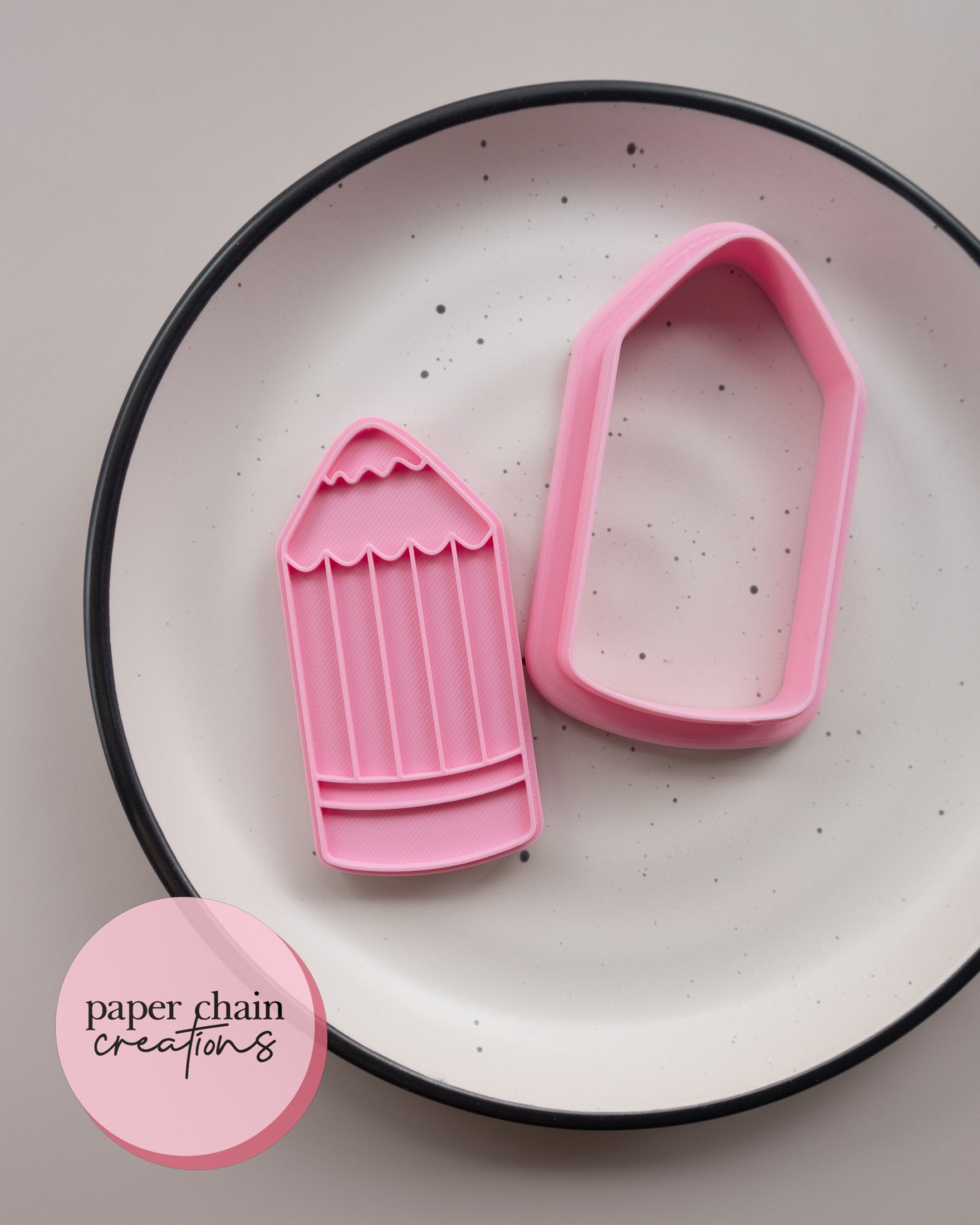 1 x Pencil cookie cutter with matching embosser. Embosser comes with handle on the back for ease of use.