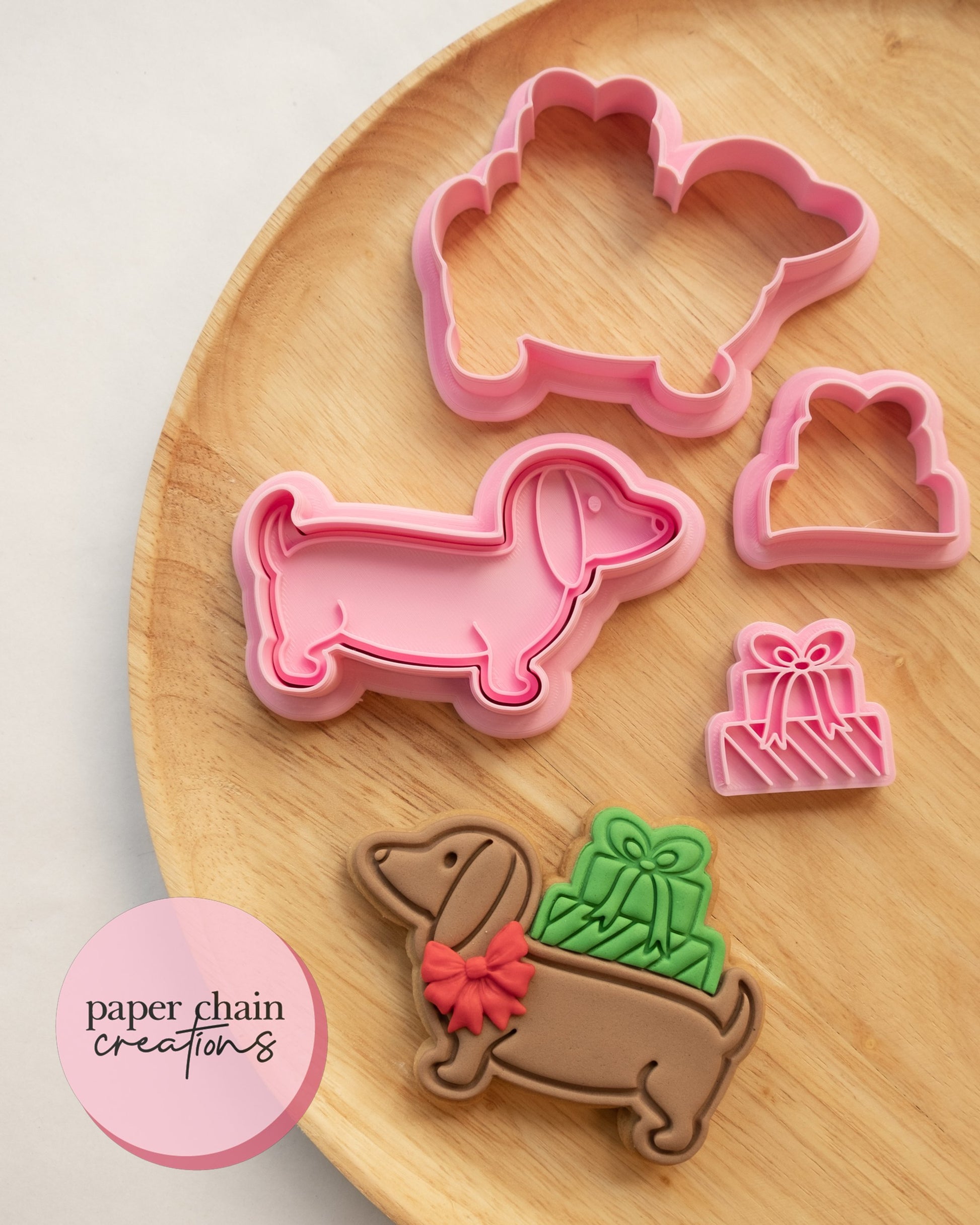Sausage Dog with a Present Cookie Cutters and Embossers SET