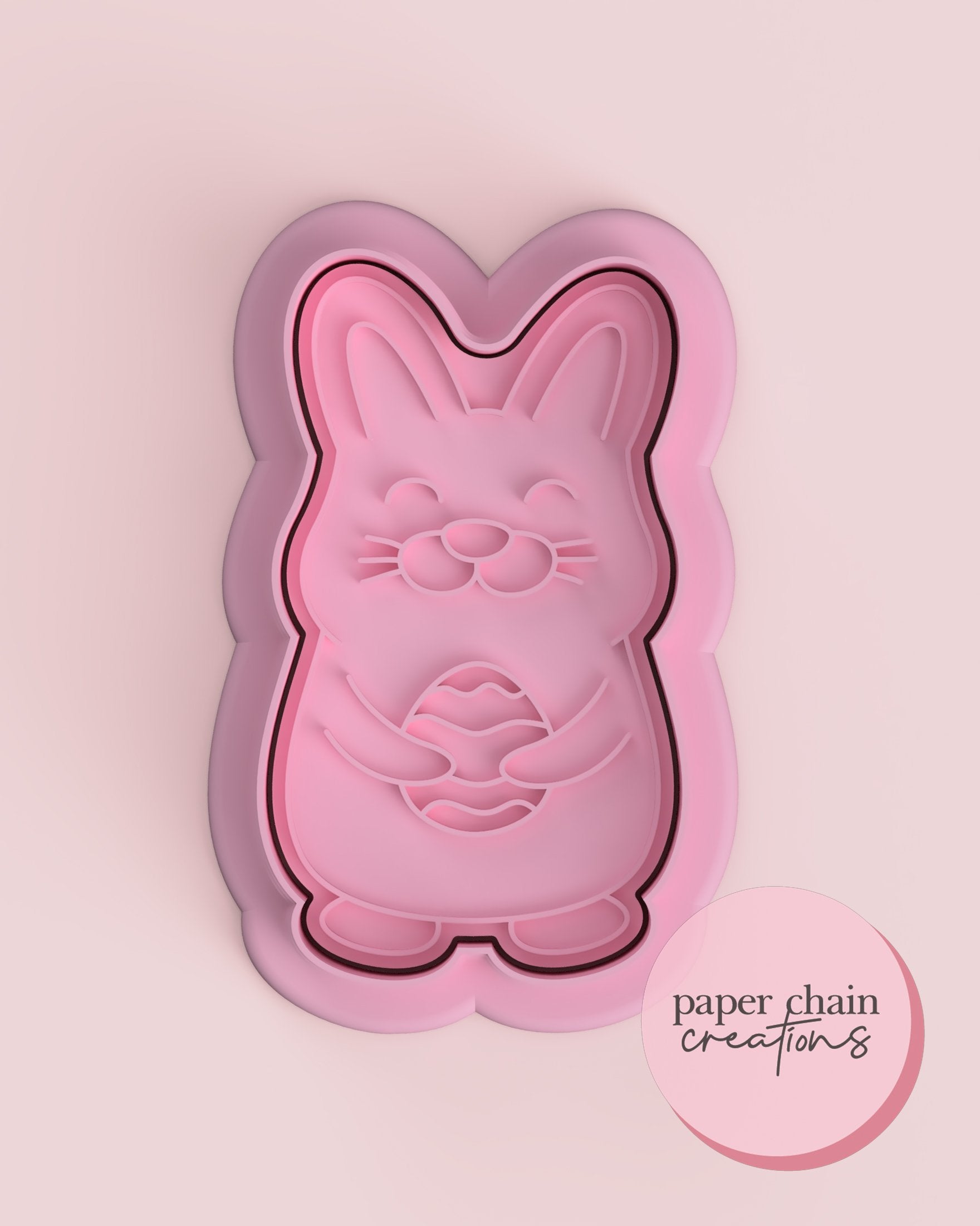 1 x Standing Bunny cookie cutter with matching embosser. Embosser comes with handle on the back for ease of use.