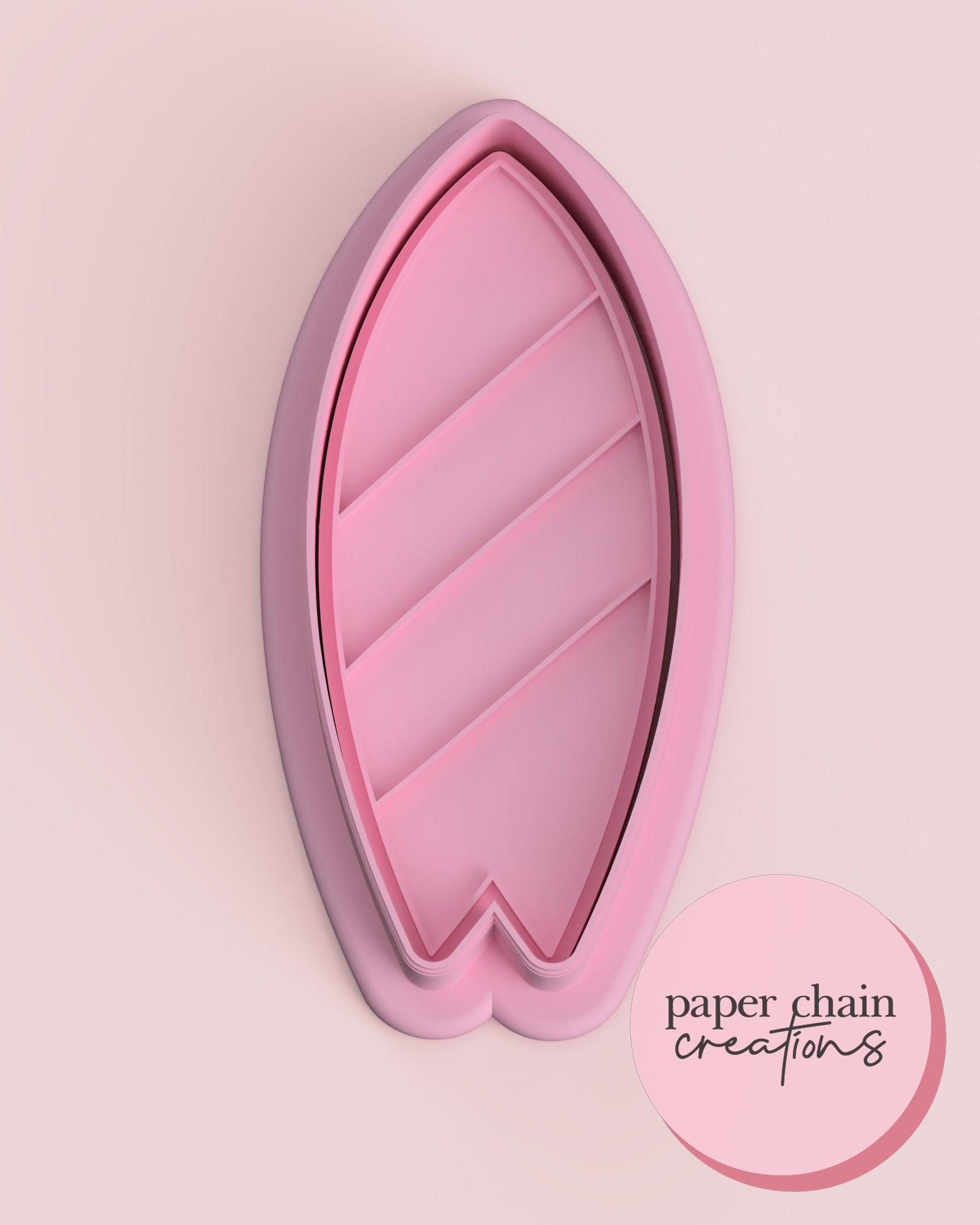 1 x Surf Board Cookie Cutter with matching embosser. Embosser comes with handle on the back for ease of use.