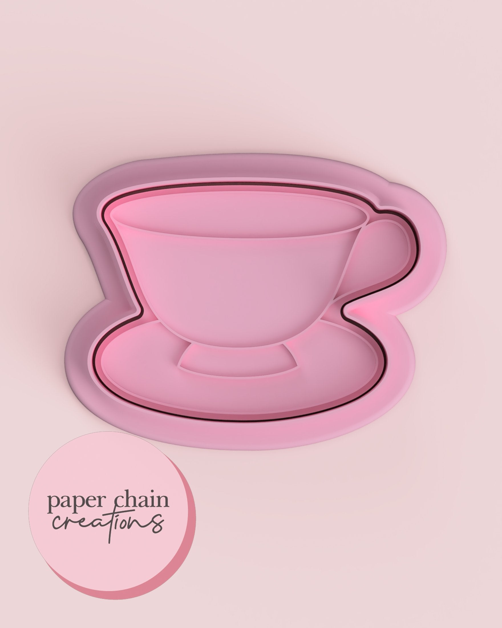1 x Teacup with Saucer Cookie Cutter with matching embosser. Embosser comes with handle on the back for ease of use.