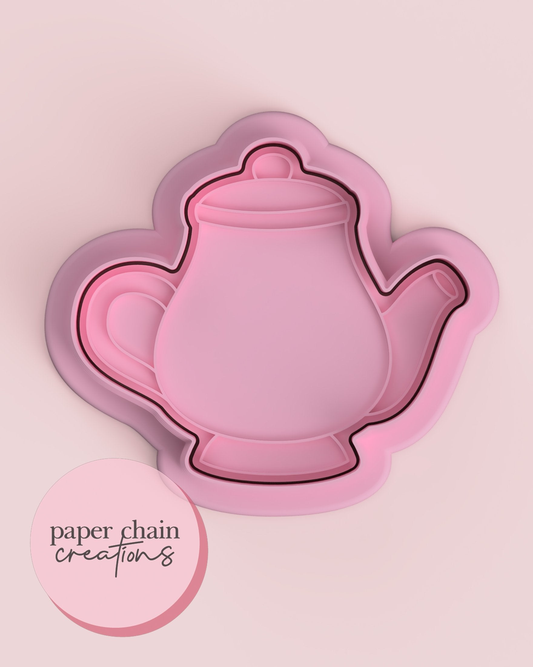 1 x Teapot V2 Cookie Cutter with matching embosser. Embosser comes with handle on the back for ease of use.