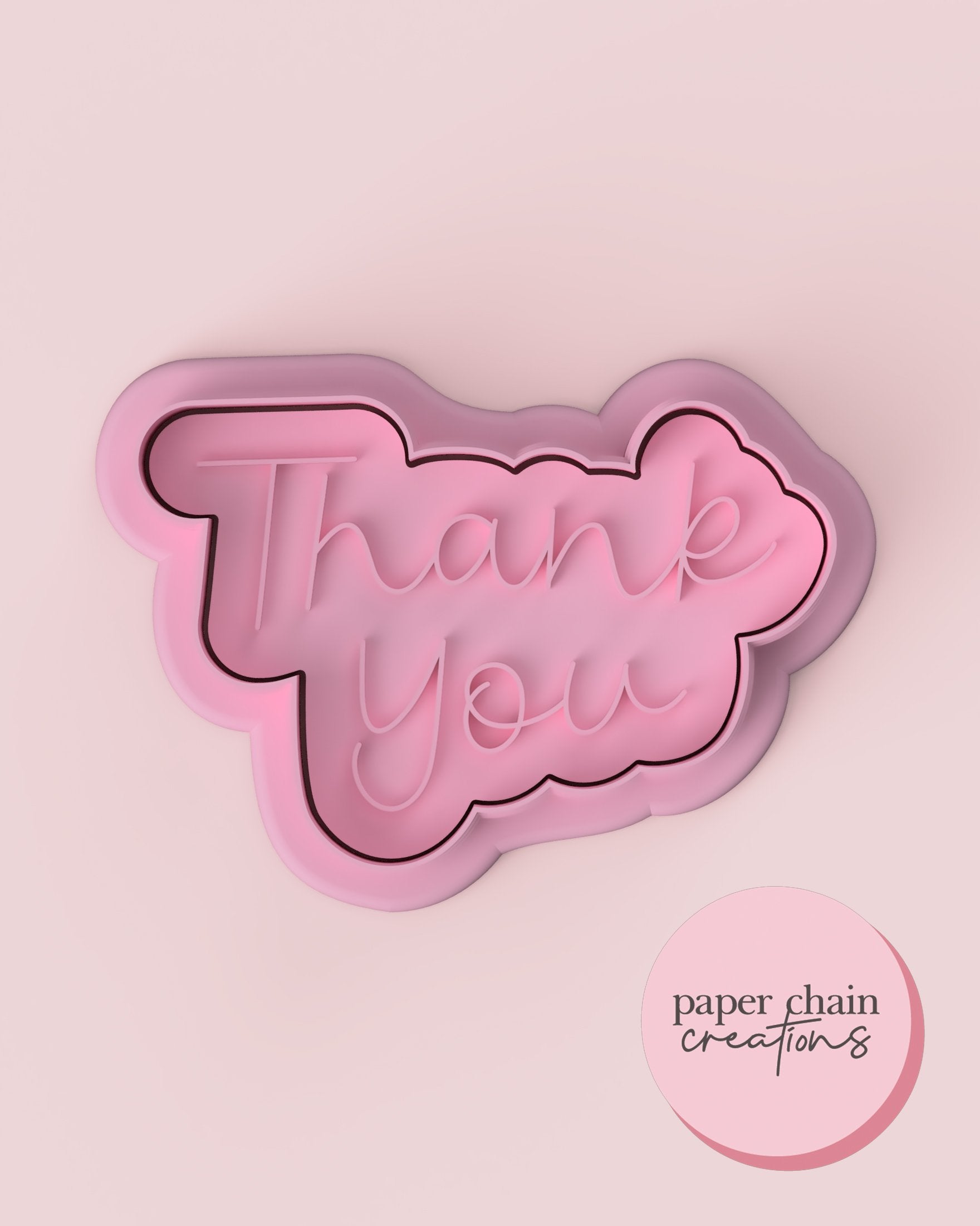 1 x Thank You cookie cutter with matching embosser. Embosser comes with handle on the back for ease of use.