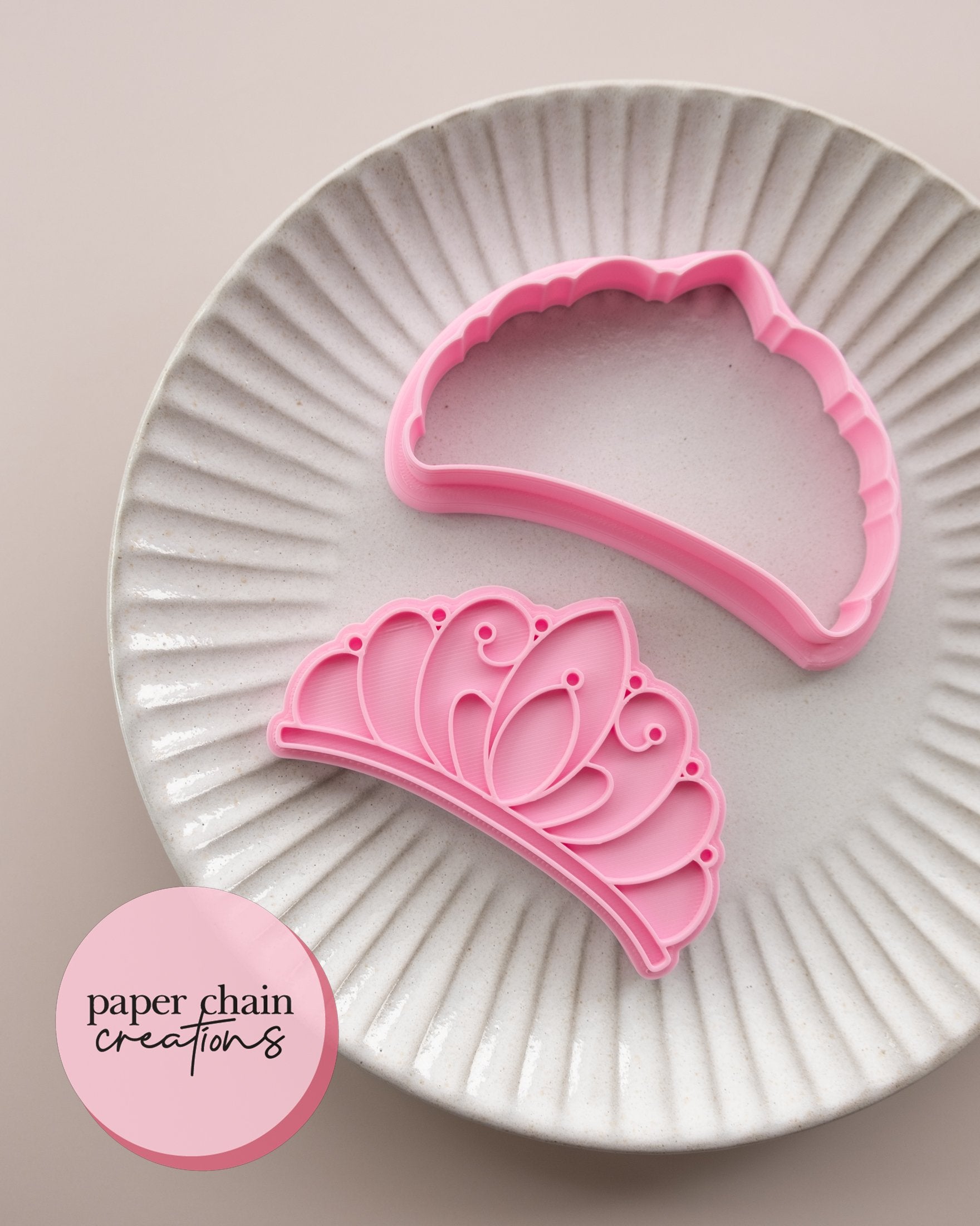 1 x Tiara cookie cutter with matching embosser. Embosser comes with handle on the back for ease of use.