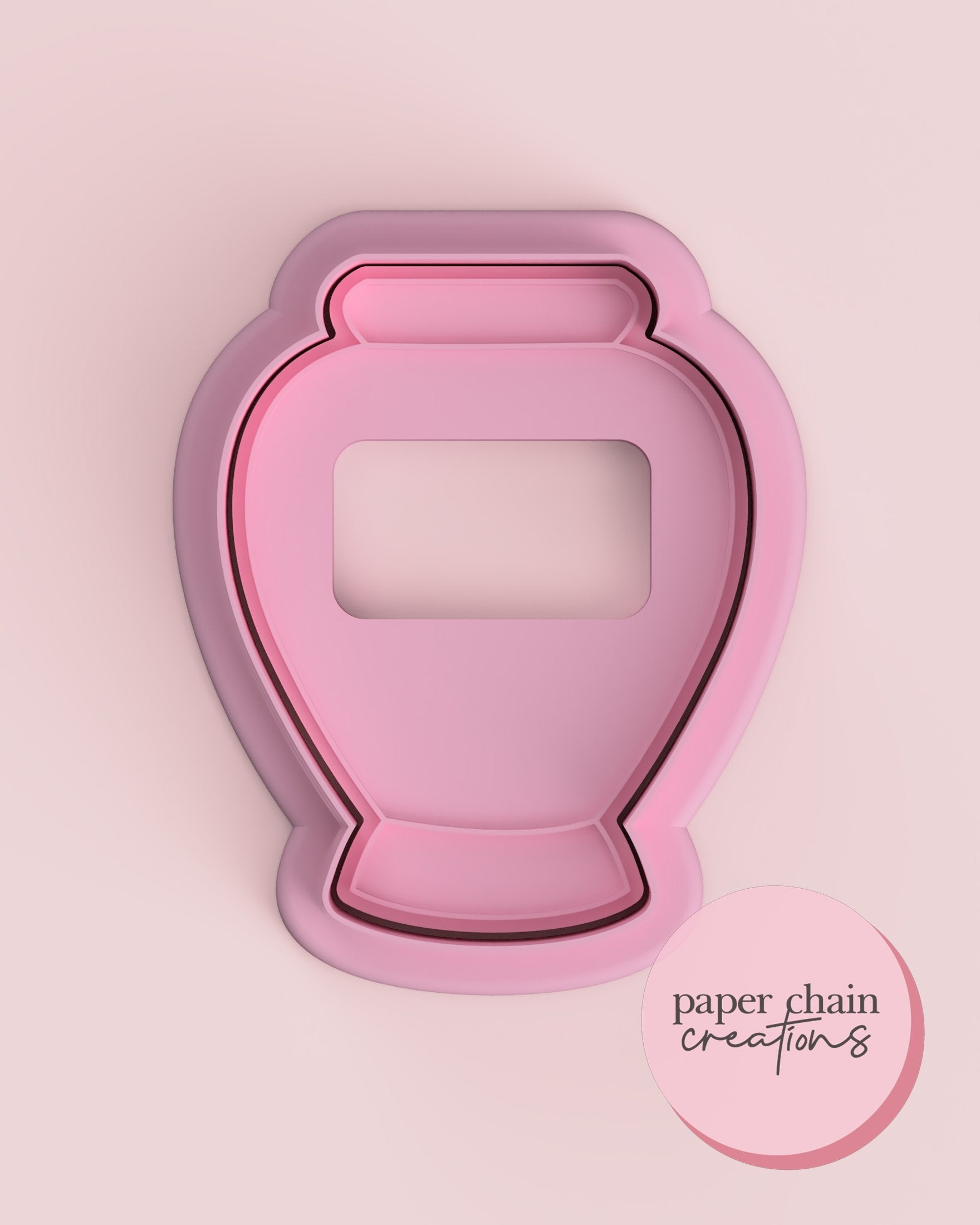 1 x Vase Cookie Cutter with matching embosser. Embosser comes with handle on the back for ease of use.